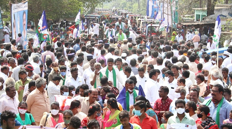 Clock Of Nellore ( Manubolu ) – సర్వేపల్లి నియోజకవర్గాన్ని శ్రీ బాలాజీ జిల్లాలో కలపకుండా నెల్లూరుజిల్లాలోనే కొనసాగిస్తున్న తరుణంలో ఎమ్మెల్యే కాకాణి గోవర్ధన్ రెడ్డి ముఖ్యమంత్రి జగన్మోహన్ రెడ్డికి ధన్యవాదాలు తెలియజేస్తూ “జగనన్న వరం – సర్వేపల్లి జన నీరాజనం” పేరిట వారోత్సవాలు నిర్వహిస్తున్నారు. ఇందులో భాగంగా నియోజకవర్గంలోని అన్నీ మండల కేంద్రాల్లో ర్యాలీలు చేపట్టి సిఎం చిత్ర పటానికి పాలాభిషేకం నిర్వహిస్తున్నారు. తాజాగా శనివారం మనుబోలు మండల కేంద్రంలో రైతులతో కలిసి ట్రాక్టర్లతో భారీ ర్యాలీ చేపట్టారు. ముఖ్యమంత్రి జగన్మోహన్ రెడ్డికి ధన్యవాదాలు తెలియజేశారు.