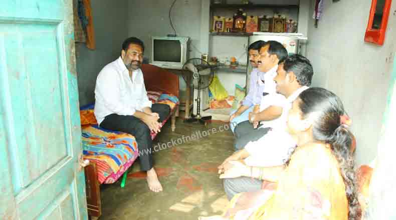 Clock Of Nellore ( Nellore ) – నెల్లూరు రూరల్ ఎమ్మెల్యే కోటంరెడ్డి శ్రీధర్ రెడ్డి చేపట్టిన జగనన్న మాట – కార్యకర్తల ఇళ్లకి కోటంరెడ్డి బాట కార్యక్రమం 56వ రోజుకు చేరుకుంది. 56వ రోజైన సోమవారం ఆయన నెల్లూరులోని 31వ డివిజన్ లో చేపట్టారు. డివిజన్ పరిధిలోని శివాజీనగర్, చవట మిట్ట, రాజా రామిరెడ్డి నగర్ ప్రాంతాల్లోని కార్యకర్తలను ఆయన కలుసుకున్నారు. వల్లెపు సుశీలమ్మ అనే కార్యకర్త ఇంటి నుండి మొదలైన కార్యక్రమం ఆయా ప్రాంతాల్లోని కార్యకర్తల నివాసాలకు ఆయన ఒంటరిగా వెళ్లి వారితో కాసేపు ఏకాంతంగా మాట్లాడారు. వారి యోగ క్షేమాలను అడిగి తెలుసుకున్నారు. వారి సమస్యలను సావధానంగా విన్నారు. తానున్నానంటూ వారికి భరోసా ఇచ్చి, ప్రభుత్వ పథకాలు అందుతున్నాయా అని తెలుసుకున్నారు. మార్గం మధ్యలో స్థానికంగా ఉన్న వారితో ముచ్చటించి సమస్యలను తెలుసుకున్నారు. వీలైనంత త్వరగా సమస్యలు పరిష్కరిస్తానని కోటంరెడ్డి వారికి హామీ ఇచ్చారు.