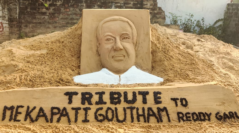 Clock Of Nellore ( Chillakuru ) – ప్రముఖ సైకత శిల్పి మంచాల సనత్ కుమార్ వినూత్నంగా మంత్రి మేకపాటి గౌతమ్ రెడ్డికి నివాళి అర్పించారు. స్వగ్రామమైన చిల్లకూరు మండలం, ఏరూరులో గౌతమ్ రెడ్డి సైకత శిల్పాన్ని రూపొందించి ట్రిబ్యూట్ టు మేకపాటి గౌతమ్ రెడ్డి అంటూ సైకత నివాళి అర్పించారు.