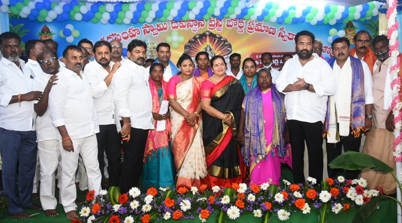 పార్టీ కోసం కష్టపడి పనిచేసి ఆథ్యాత్మిక భావన కలిగిన నాయకులు, కార్యకర్తలకు వివిధ ఆలయ పాలక మండళ్లలో స్థానం కల్పిస్తున్నామని ఎమ్మెల్యే కార్యాలయ ఇంఛార్జ్ కోటంరెడ్డి గిరిధర్ రెడ్డి చెప్పారు. ఈ కార్యక్రమంలో ప్రముఖ దాత అల్తూరు సులోచనమ్మ, నెల్లూరు నగర మేయర్ స్రవంతి, వైసీపి నెల్లూరు నగర అధ్యక్షులు తాటి వెంకటేశ్వర రావు, నెల్లూరు ఏఎంసి ఛైర్మైన్ ఏసు నాయుడు, వైసీపి నెల్లూరు రూరల్ మండల కన్వీనర్ ఇందుపూరు శ్రీనివాసులు రెడ్డి తదితరులు పాల్గొన్నారు.