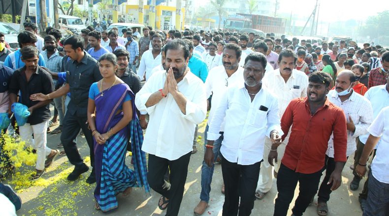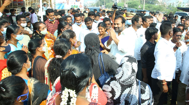 Clock Of Nellore ( Nellore ) – ఇటీవల కురిసిన భారీ వర్షాలు, సంభవించిన వరదలకు నెల్లూరు రూరల్ నియోజకవర్గంలోని వివిధ చోట్ల రోడ్లు భారీగా దెబ్బతిన్న విషయం తెలిసిందే. ఈ రోడ్ల మరమ్మత్తులకు ఎమ్మెల్యే కోటంరెడ్డి శ్రీధర్ రెడ్డి ప్రభుత్వం నుండి ప్రత్యేకంగా నిధులు మంజూరు చేయించారు. దెబ్బతిన్న రోడ్ల మరమ్మత్తు పనులను గత నాలుగు రోజుల నుండి ప్రాంతాల వారీగా ప్రారంభిస్తున్నారు. గురువారం నెల్లూరు మూలాపేటలోని ఇరుకళల పరమేశ్వరి అమ్మవారి దేవస్థానం నుండి పొట్టేపాళెం వరకూ 6 కోట్ల రూపాయలతో చేపట్టనున్న రోడ్డు పనులకు ఎమ్మెల్యే శ్రీధర్ రెడ్డి శ్రీకారం చుట్టారు. నగర మేయర్ పోట్లూరి స్రవంతి, ఎమ్మెల్యే కార్యాలయ ఇంఛార్జ్ కోటంరెడ్డి గిరిధర్ రెడ్డితో కలిసి శిలాఫలకాన్ని ఆవిష్కరించారు.