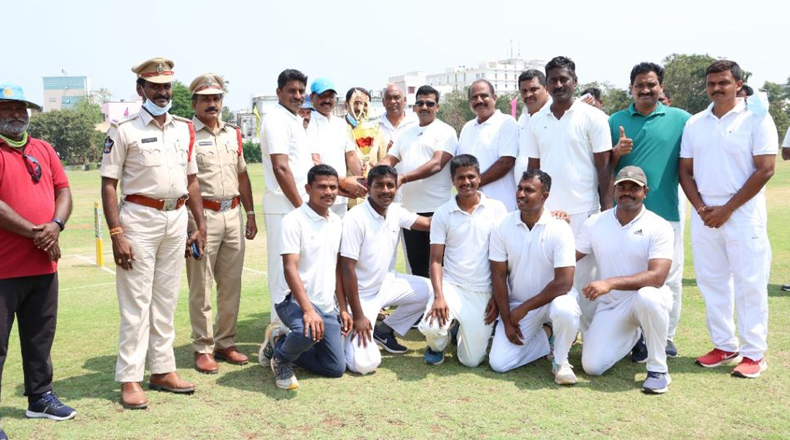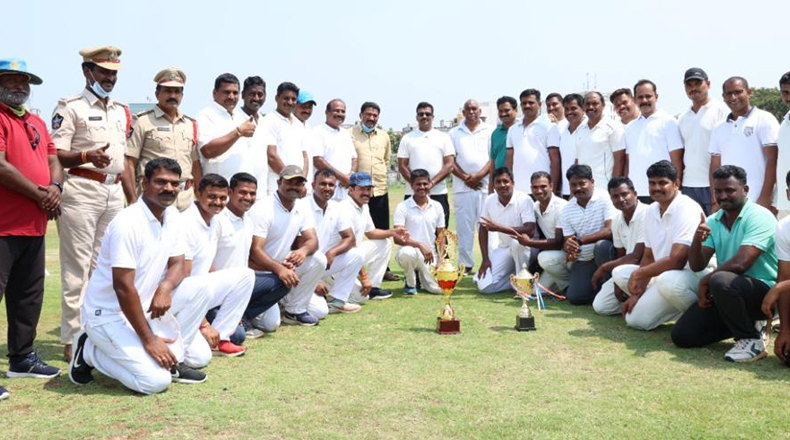 Clock Of Nellore ( Nellore ) – నెల్లూరులోని పోలీసు కవాతు మైదానంలో శనివారం జిల్లా పోలీస్ అధికారులు రెండు టీములుగా ఏర్పడి ఫ్రెండ్లీ క్రికెట్ మ్యాచ్ ఆడారు. గూడూరు రూరల్ సిఐ కెప్టెన్ గా ఓ టీము, నెల్లూరులోని చిన్నబజార్ పోలీస్ స్టేషన్ సిఐ మధుబాబు కెప్టెన్ గా మరో టీము మ్యాచ్ లో పోటాపోటీగా తలపడ్డారు. టాస్ గెలిచి బ్యాటింగ్ ఎంచుకున్న సిఐ మధుబాబు టీము 20 ఓవర్లకు 7 వికెట్లు నష్టపోయి 171 పరుగులు చేసింది. అనంతరం బ్యాటింగ్ చేపట్టిన గూడూరు రూరల్ సిఐ టీము 16 ఓవర్లలోనే మూడు వికెట్లు కోల్పోయి 172 పరుగులు చేసి విజేతగా నిలిచింది. మ్యాచ్ అనంతరం జిల్లా ఎస్పీ విజయరావు విన్నర్ టీముకు, రన్నర్ టీముకు బహుమతులు అందజేశారు. 24 గంటలూ విధి నిర్వహిణలో ఉండే పోలీసు అధికారులకు మానసిక ఉల్లాసం ఎంతో అవసరమని అన్నారు. మానసిక ఉల్లాసం కోసం క్రీడలు ఎంతో దోహదపడతాయని పేర్కొన్నారు. విన్నర్స్ కు, రన్నర్స్ కు శుభాకాంక్షలు తెలిపారు.
