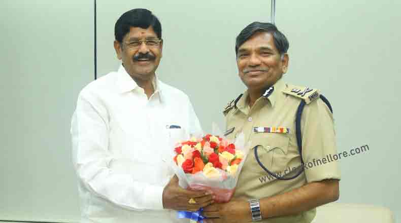 Clock Of Nellore ( Amaravathi ) – పూర్వపు నెల్లూరుజిల్లా ఎస్పీ, ప్రస్తుత డిజిపి కెవి రాజేంద్రనాథ్ రెడ్డిని నెల్లూరు ఎంపి ఆదాల ప్రభాకర్ రెడ్డి, వెంకటగిరి ఎమ్మెల్యే ఆనం రామనారాయణరెడ్డి మర్యాద పూర్వకంగా కలిశారు. ఆమరావతిలో డిజిపిని వేరు వేరుగా కలిసి శుభాకాంక్షలు తెలియజేశారు. పుష్ప గుచ్ఛం అందజేసి డిజిపి నియమితులైనందుకు శుభాభినందనలు తెలిపారు.