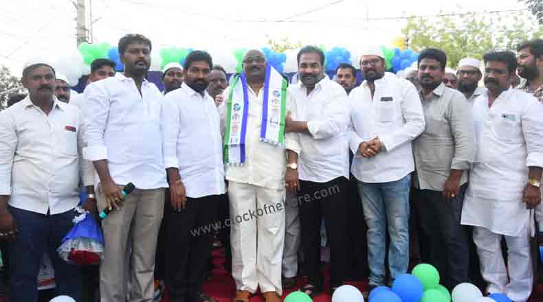 Clock Of Nellore ( Nellore ) – తెలుగుదేశం పార్టీ మైనార్టీ విభాగం సీనియర్ నేత షేక్ ఆసిఫ్ బాషా ఆపార్టీకి గుడ్ బై చెప్పారు. వైఎస్ఆర్ కాంగ్రెస్ పార్టీ కండువా కప్పుకున్నారు. నెల్లూరులోని డైకస్ రోడ్డు సెంటర్ లో వందలాది మంది అనుచరులతో కలిసి నెల్లూరు రూరల్ ఎమ్మెల్యే కోటంరెడ్డి శ్రీధర్ రెడ్డి ( Kotamreddy Sridhar Reddy ) సమక్షంలో వైసీపి కండువా కప్పుకున్నారు. తనపై నమ్మకంతో పార్టీలో చేరుతున్న ఆసిఫ్ బాషాకు ప్రాధాన్యత ఇస్తానని కోటంరెడ్డి హామీ ఇచ్చారు. తాను ఎన్నికల సమయంలో మాత్రమే రాజకీయాలు చేస్తానని, మిగతా సమయంలో ప్రజా సమస్యల పరిష్కారం కోసం పనిచేస్తానని స్పష్టం చేశారు. ఈ కార్యక్రమంలో వైసీపి రాష్ట్ర కార్యదర్శి కోటంరెడ్డి గిరిధర్ రెడ్డి, 32వ డివిజన్ కార్పొరేటర్ తాళ్లూరు అవినాష్, వైసీపి నేతలు బెజవాడ మేఘనాథ్ సింగ్ తదితరులు పాల్గొన్నారు.