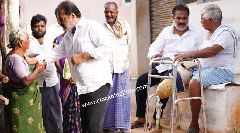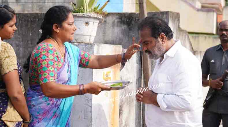 Clock Of Nellore ( Nellore Rural ) – జగనన్న మాట – గడప గడపకూ కోటంరెడ్డి శ్రీధర్ రెడ్డి బాట పేరుతో నెల్లూరు రూరల్ ఎమ్మెల్యే కోటంరెడ్డి శ్రీధర్ రెడ్డి ( MLA KotamReddy ) చేపడుతున్న పాదయాత్ర 7వ రోజుకు చేరింది. గత రాత్రి కొత్త వెల్లంటిలోని పోలవరపు దిలీప్ నివాసంలో బస చేసిన కోటంరెడ్డి ఇవాళ ఉదయం బొడ్డు వెంకటేశ్వర్ రెడ్డి నివాసం నుండి ఇంటింటికి కార్యక్రమాన్ని ప్రారంభించారు. గడప గడపకూ వెళ్లి ప్రజలను పలకరించారు. వారి యోగక్షేమాలు అడిగి తెలుసుకోవడంతో పాటూ ప్రభుత్వ పథకాలు అందుతున్నాయా లేదా అని ఆరా తీశారు. ఈ సందర్భంగా స్థానికులతో ఎమ్మెల్యే శ్రీధర్ రెడ్డి ముచ్చటించారు. కొత్త వెల్లంటి గ్రామంలో 4.23 కోట్ల రూపాయలతో సంక్షేమ పథకాలు, 2.56 కోట్లతో అభివృద్ధి పనులు చేసినట్లు తెలియజేశారు. మిగిలిన పనులను కూడా త్వరలో పూర్తి చేస్తానని హామీ ఇచ్చారు.