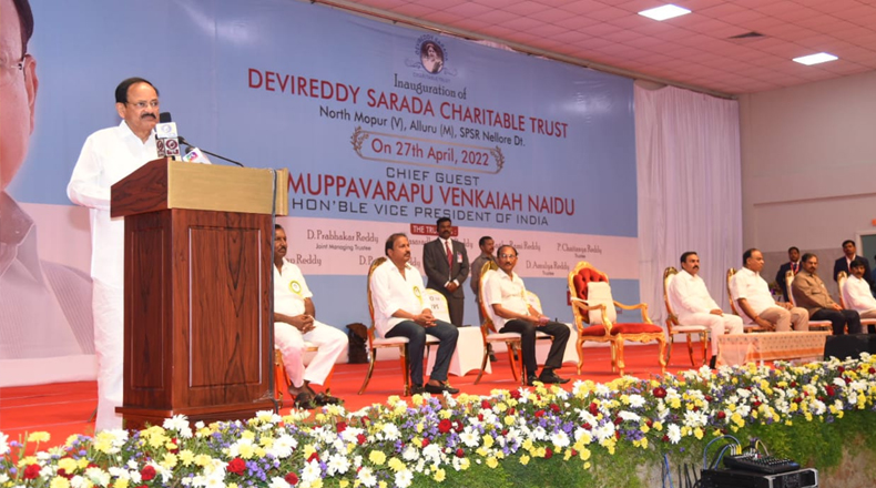 Clock Of Nellore ( Alluru ) – సేవ అనేది మన భారతీయ సంస్కృతిలో ఒక భాగమని, ప్రతి ఒక్కరూ సమాజంలో పదిమందికి సాయపడేలా జీవించాలని, అప్పుడే మన జీవితానికి సార్థకత చేకూరుతుందని భారత ఉప రాష్ట్రపతి ముప్పవరపు వెంకయ్య నాయుడు ఉద్బోధించారు. బుధవారం ఆయన నెల్లూరుజిల్లా అల్లూరు మండలంలోని నార్త్ మోపూరు గ్రామంలో నెలకొల్పిన దేవిరెడ్డి శారద చారిటబుల్ ట్రస్ట్ ను ప్రారంభించారు. తొలుత ట్రస్ట్ కు విచ్చేసిన భారత ఉపరాష్ట్రపతి కి ట్రస్ట్ చైర్మన్ దేవిరెడ్డి సుధాకర్ రెడ్డి, సభ్యులు, ప్రజా ప్రతినిధులు, ప్రముఖులు ఘన స్వాగతం పలికారు. అనంతరం ట్రస్ట్ ఆవరణలోని డెవలప్మెంట్ సెంటర్ ను సందర్శించిన ఉపరాష్ట్రపతి, శిలాఫలకాన్ని ఆవిష్కరించి దేవిరెడ్డి శారదమ్మ విగ్రహానికి పూలమాలవేసి నివాళులర్పించారు. తదుపరి ట్రస్ట్ ఆవరణలోని హైస్కూల్, ఆస్పత్రిని సందర్శించారు. హైస్కూల్లోని చిన్నారులతో కాసేపు ముచ్చటించారు.