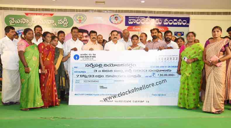 తమ ప్రభుత్వం వచ్చాక ఈ మూడు సంవత్సరాల కాలంలో 26,98,822 స్వయం సహాయక సంఘాల లోని 2,79,09,521 మంది సభ్యులకు 3616 కోట్ల రూపాయలు సున్నా వడ్డీ కింద అందించడం జరిగిందన్నారు. జిల్లాలో 1,23,441 సంఘాలకు చెందిన 12,68,355 మంది మహిళలకు 196 కోట్ల రూపాయలు ప్రభుత్వం విడుదల చేసిందన్నారు ఆ ప్రకారంగా సర్వేపల్లి నియోజకవర్గంలో 2019- 20 సంవత్సరంలో 4369 గ్రూపులకు చెందిన 45 వేల మంది మహిళలకు 8 కోట్ల 35 లక్షల రూపాయలు, 2020-21 సంవత్సరానికి 5068 గ్రూపులకు చెందిన 52,200 మంది మహిళలకు 7.55 కోట్ల రూపాయలు, 2021-22 వ సంవత్సరానికి 5402 గ్రూపులకు చెందిన 55,863 మంది మహిళలకు 7.94 కోట్ల రూపాయలు ప్రభుత్వం విడుదల చేసిందన్నారు.