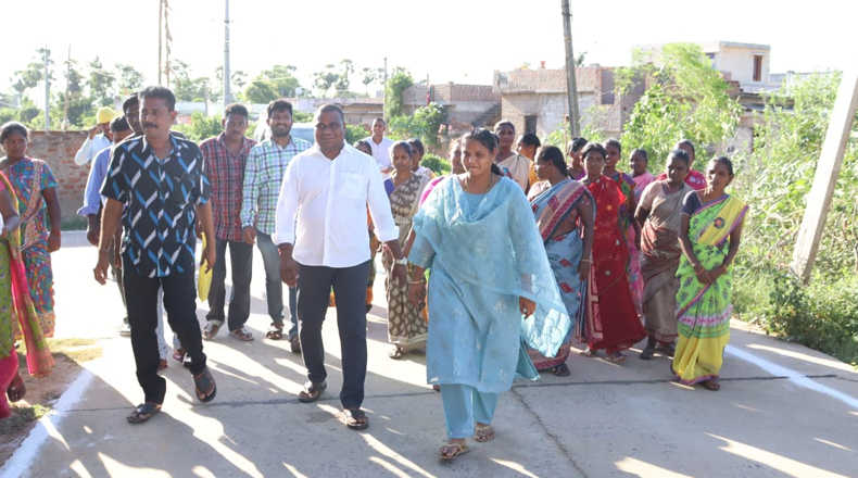 Clock Of Nellore ( Nellore ) – నెల్లూరు 12వ డివిజన్ పెద్ద చెరుకూరు, గిరిజన కాలనీలో నగర మేయర్ స్రవంతి, వైసీపి నేత జయవర్ధన్ “కోటంరెడ్డి శ్రీధర్ రెడ్డి మాట – గడప గడపకు మీ కార్పొరేటర్ బాట” కార్యక్రమాన్ని నిర్వహించారు. ఈ కార్యక్రమంలో పాల్గొన్న నగర మేయర్ స్రవంతికి స్థానికులు పూలతో, రంగవల్లులతో ఘనంగా స్వాగతం పలికారు. కార్యక్రమంలో భాగంగా ప్రతి ఇంటికి ప్రజలను పలకరించి వారి సమస్యలను అడిగి తెలుసుకున్నారు. ప్రభుత్వ పథకాలు అందుతున్నాయా లేదా అని అడిగి తెలుసుకున్నారు. ఈ సందర్భంగా మేయర్ మాట్లాడుతూ ప్రజలందరికి సంక్షేమ పాలన అందించే దిశగా రాష్ట్రంలో ముఖ్యమంత్రి అమలు చేస్తున్న విధానాలతో గడప గడపలో సంతోషాలు విరాజిల్లుతున్నాయని, ప్రతి ఇంట్లో ఏదో ఒక పథకం అందుతుందనీ, సచివాలయ వ్యవస్థ, వాలంటీర్ల ద్వారా ప్రజల వద్దకు పాలన అనే మాటను రాష్ట్ర ముఖ్యమంత్రి వై.యస్.జగన్మోహన్ రెడ్డి సార్ధకం చేస్తున్నారని అన్నారు. ఈ కార్యక్రమంలో వై.సీ.పీ నాయకులు నెల్లూరు ప్రసన్న కుమార్ రెడ్డి, రాచూరి రమేష్ పాల్గొన్నారు.