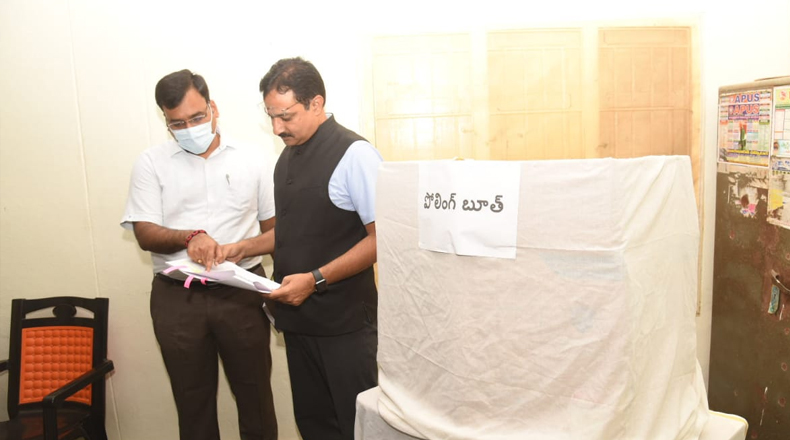 Clock Of Nellore ( Atmakur ) – ఆత్మకూరు శాసనసభ నియోజకవర్గ ఉప ఎన్నికలు ప్రశాంత వాతావరణంలో సజావుగా జరిగేలా అన్నీ ఏర్పాట్లు పూర్తి చేసినట్లు రాష్ట్ర ముఖ్య ఎన్నికల అధికారి( సీఈఓ) ముఖేష్ కుమార్ మీనా తెలిపారు. ఆత్మకూరు శాసనసభ నియోజకవర్గ ఉప ఎన్నికల నేపథ్యంలో సోమవారం ముఖేష్ కుమార్ మీనా, జిల్లా కలెక్టర్ చక్రధర్ బాబు తో కలసి ఆత్మకూరు నియోజక వర్గ పరిధిలో విస్తృతంగా పర్యటించి పోలింగ్, కౌంటింగ్ ముందస్తు ఏర్పాట్లను పరిశీలించారు. తొలుత రాష్ట్ర ముఖ్య ఎన్నికల అధికారి ముఖేష్ కుమార్ మీనా, సంగం మండలం, దువ్వూరు వద్ద ఏర్పాటు చేసిన చెక్ పోస్టును సందర్శించి నిర్వహిస్తున్న రిజిస్టర్స్ ను పరిశీలించారు. చెక్ పోస్టులో విధులు నిర్వర్తిస్తున్న సిబ్బంది నుండి వివరాలు అడిగి తెలుసుకున్నారు. అనంతరం దువ్వూరులోని 228, 229 నెంబర్ మోడల్ పోలింగ్ కేంద్రాలను సిద్దీపురం లోని 225 నెంబర్ పోలింగ్ కేంద్రాన్ని, ఆత్మకూరు మండలం వాసిలి గ్రామంలోని 151, 152 నెంబర్ పోలింగ్ కేంద్రాలను సందర్శించి పోలింగ్ ఏర్పాట్లను పరిశీలించారు. ఓటర్ స్లిప్ ల పంపిణీ తదితర విషయాలను పోలింగ్ బూత్ స్థాయి అధికారులను అడిగి తెలుసుకున్నారు. ఈ సందర్బంగా పోలింగ్ రోజున ఓటర్లకు, పోలింగ్ సిబ్బందికి కావాల్సిన త్రాగునీటి సదుపాయం, మరుగుదొడ్ల వసతి తదితర ఏర్పాట్లను సీఈఓ పరిశీలించారు.