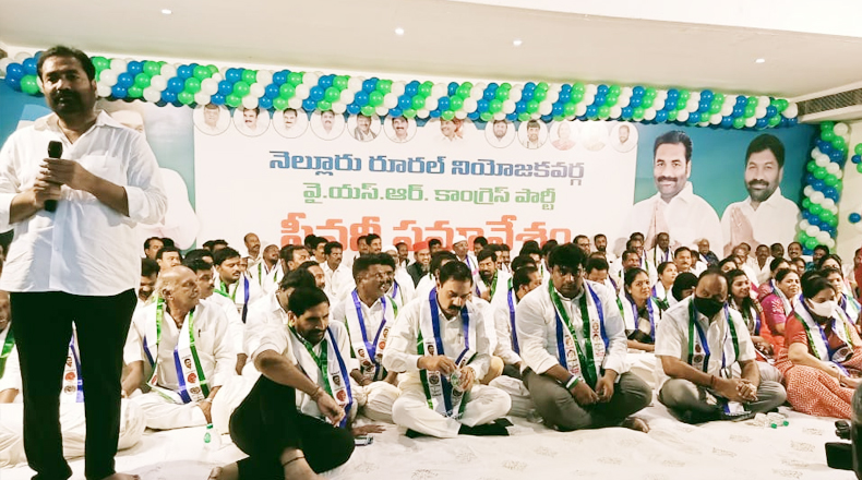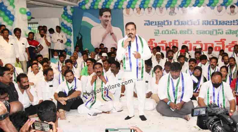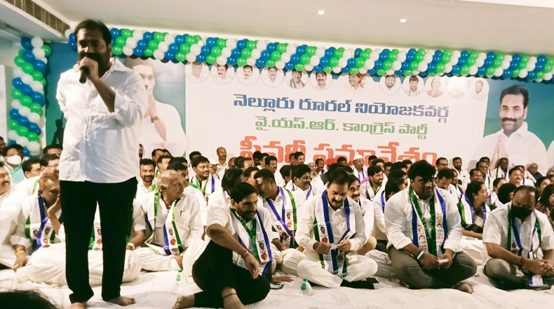 Clock Of Nellore ( Nellore ) – నెల్లూరు రూరల్ నియోజకవర్గ వైఎస్ఆర్ కాంగ్రెస్ పార్టీ ప్లీనరీ సమావేశం శనివారం ఘనంగా జరిగింది. రూరల్ ఎమ్మెల్యే కోటంరెడ్డి శ్రీధర్ రెడ్డి, వైసీపి రాష్ట్ర కార్యదర్శి కోటంరెడ్డి గిరిధర్ రెడ్డి ఆధ్వర్యంలో నెల్లూరు మాగుంట లే అవుట్ లోని సిపిఆర్ కళ్యాణ మండపంలో జరిగిన ఈ సమావేశానికి పార్టీ కార్యకర్తలు, ప్రజలు పెద్ద సంఖ్యలో హాజరయ్యారు. సమావేశానికి మంత్రి కాకాణి గోవర్ధన్ రెడ్డి, రాజ్యసభ సభ్యులు వేమిరెడ్డి ప్రభాకర్ రెడ్డి, బీద మస్తాన్ రావు, ఎమ్మెల్సీ బల్లి కళ్యాణ చక్రవర్తి, వేమిరెడ్డి ప్రశాంతి రెడ్డి, విజయడైరీ ఛైర్మైన్ కొండ్రెడ్డి రంగారెడ్డి తదితరులు ముఖ్య అతిధులుగా హాజరయ్యారు. ముందుగా రూరల్ ఎమ్మెల్యే కోటంరెడ్డి శ్రీధర్ రెడ్డి మాట్లాడారు. సాధారణ రైతు కుటుంబం నుండి వచ్చిన తనకు 30 ఏళ్ల పోరాటం తర్వాత వైసీపి అధినేత వైఎస్ జగన్మోహన్ రెడ్డి అవకాశం ఇచ్చారని, రూరల్ ప్రజలు రెండు సార్లు ఎమ్మెల్యేగా గెలిపించారని అన్నారు. నియోజకవర్గ ప్రజలకు జీవితాంతం రుణపడి ఉంటానని హామీ ఇచ్చారు. సిఎం జగన్ ఇచ్చిన బాధ్యతను తూచా తప్పకుండా పాటిస్తూ, జనానికి జవాబు దారీగా ఉంటూ, పార్టీ ప్రతిష్ఠను పెంచుతానని స్పష్టం చేశారు. వైసీపి రాష్ట్ర కార్యదర్శి కోటంరెడ్డి గిరిధర్ రెడ్డి మాట్లాడుతూ సిఎం జగన్ పాలనకు స్థానిక సంస్థల ఎన్నికల ఫలితాలే గీటురాయి అని అన్నారు. వందకి వంద శాతం స్థానాలను వైసిపిని గెలిపించి పార్టీకి అండగా ఉన్నామని ప్రజలు తెలియజేశారన్నారు. నెల్లూరు రూరల్ లో ప్రతి పక్ష పార్టీ పోటీ చేయాలంటేనే భయపడుతుందని గిరిధర్ రెడ్డి పేర్కొన్నారు. నెల్లూరు రూరల్ లో ఎవరికీ ఏ సమస్య వచ్చినా రూరల్ ఎమ్మెల్యే కార్యాలయం వెంటనే స్పందిస్తుందని పార్టీలకు అతీతంగా తాము పనిచేస్తున్నామని స్పష్టం చేశారు.