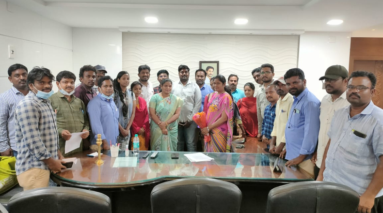 Clock Of Nellore ( Nellore ) – రాష్ట్ర ముఖ్యమంత్రి వై.యస్.జగన్మోహన్ రెడ్డి ఉన్నత ఆశయాలతో రూపొందించిన సచివాలయ వ్యవస్థలో నియమితులైన గ్రామ, వార్డు కార్యదర్శులకు ఉత్తమ భవితవ్యం కల్పించేందుకు వారికి ప్రొబేషన్ డిక్లరేషన్ చేస్తూ రాష్ట్ర ప్రభుత్వం తీసుకున్న నిర్ణయం అత్యంత అభినందనీయం అని నెల్లూరు నగరపాలక సంస్థ మేయర్ స్రవంతి హర్షం వ్యక్తం చేశారు. ఆంధ్రప్రదేశ్ గ్రామ, వార్డు సచివాలయ అసోసియేషన్ (రి.నెం.13/2020) ఆధ్వర్యంలో అసోసియేషన్ నాయకులు, సభ్యులు మేయర్ ను ఆమె చాంబర్ లో శనివారం కలుసుకుని పుష్పగుచ్చం అందజేసి కృతజ్ఞతలు తెలియజేసారు. ఈ సందర్భంగా మేయర్ మాట్లాడుతూ ప్రొబేషన్ పూర్తి చేసుకున్న ఉద్యోగులు మరింత భాద్యతాయుతంగా వ్యవహరిస్తూ తమ విధుల పట్ల అంకిత భావం కలిగి వుండాలని సూచించారు. రాష్ట్ర ప్రభుత్వం అందిస్తున్న సంక్షేమ పాలనను అర్హులైన లబ్దిదారులందరికీ అందేలా సంక్షేమ వారధులుగా నిలవాలని ఆకాంక్షించారు. ఈ కార్యక్రమంలో ఆంధ్రప్రదేశ్ రాష్ట్ర గ్రామ, వార్డు సచివాలయ ఎంప్లాయిస్ అసోసియేషన్ రాష్ట్ర ఉపాధ్యక్షులు పిల్లి హరీష్, రాష్ట్ర జాయింట్ సెక్రటరీ వెంకటేష్, నెల్లూరు జిల్లా అధ్యక్షులు సతీష్ రెడ్డి, నగర అధ్యక్షులు బాలు, నగర ప్రధాన కార్యదర్శి సుమన్, అసోసియేషన్ సభ్యులు వినీలా, ఖాలీద్, కోటి, నరేష్, సురేష్ బాబు తదితరులు పాల్గొన్నారు.