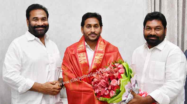 Clock Of Nellore ( Amaravathi ) – నెల్లూరు రూరల్ ఎమ్మెల్యే కోటంరెడ్డి శ్రీధర్ రెడ్డి… ఆయన సోదరుడు, వైసీపి రాష్ట్ర కార్యదర్శి కోటంరెడ్డి గిరిధర్ రెడ్డి ఇద్దరూ ఇవాళ ముఖ్యమంత్రి జగన్మోహన్ రెడ్డిని మర్యాద పూర్వకంగా కలిశారు. తాడేపల్లి క్యాంపు కార్యాలయంలో సిఎం జగన్ ను కలిసి పుష్ప గుచ్ఛం అందజేశారు. పలు అంశాలపై సిఎంతో చర్చించారు. ఆరోగ్యం ఎలా ఉందంటూ ఎమ్మెల్యే కోటంరెడ్డి శ్రీధర్ రెడ్డిని సిఎం అడిగి తెలుసుకున్నారు. పూర్తి ఆరోగ్యంగా ఉన్నట్లు శ్రీధర్ రెడ్డి సమాధానం ఇవ్వగా, జాగ్రత్తగా ఉండాలని పలు సూచనలు చేశారు. రూరల్ నియోజకవర్గంలో క్రీయాశీలకంగా వ్యవహరిస్తున్న కోటంరెడ్డి గిరిధర్ రెడ్డిని సిఎం అభినందించారు. అనంతరం నియోజకవర్గంలో పలు అభివృద్ధి పనులకు నిధులు కేటాయించాలని, అలాగే కొత్త పనులు మంజూరు చేయాలని సిఎంకు వినతి పత్రం సమర్పించారు. తర్వాత ప్రభుత్వ సలహాదారులు సజ్జల రామకృష్ణారెడ్డిని కూడా కోటంరెడ్డి సోదరులు మర్యాద పూర్వకంగా కలిసి, కొద్ది సేపు చర్చించారు.
