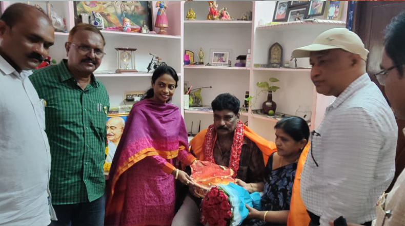 Clock Of Nellore ( Nellore ) – ఆనాటి స్వాతంత్య్ర సమరయోధుల జీవిత విశేషాలను తెలుసుకొని వారి నుండి స్ఫూర్తి పొంది దేశం పట్ల నేటితరం యువత అంకితభావంతో మెలగాలని జిల్లా కలెక్టర్ చక్రధర్ బాబు పిలుపునిచ్చారు. ఆజాదీకా అమృత్ మహోత్సవ కార్యక్రమంలో భాగంగా ఆదివారం నెల్లూరు నగరంలోని బివి నగర్ లో నివసిస్తున్న స్వాతంత్ర సమరయోధులు స్వర్ణ వేమయ్య కుమారుడు గంగాధర్ నివాసానికి జిల్లా కలెక్టర్, జాయింట్ కలెక్టర్ చేరుకుని తొలుత మహాత్మా గాంధీ, శ్రీ పొట్టి శ్రీరాములు, స్వర్ణ వేమయ్య ల చిత్రపటాలకు పుష్పాంజలి ఘటించి ఘనంగా నివాళులు అర్పించారు. అనంతరం వారు గంగాధర్ దంపతులను శాలువలుకప్పి పూలమాలలువేసి పుష్పగుచ్చాలు పండ్లు అందజేసి ఘనంగా సత్కరించారు. స్వాతంత్ర దినోత్సవ వేడుకల ఆహ్వాన పత్రికను వారికి అందజేసి ఈనెల 15వ తేదీన పోలీస్ కవాతు మైదానంలో జరిగే వేడుకల్లో పాల్గొనాలని కోరారు. అలాగే స్వర్ణ వేమయ్య కుమార్తెలు డాక్టర్ దేవసేన, డాక్టర్ అరుణకుమారి దంపతులను కూడా జిల్లా కలెక్టర్, సంయుక్త కలెక్టర్ ఘనంగా సత్కరించారు. స్వర్ణ గంగాధర్ కుటుంబ సభ్యుల బాగోగులను జిల్లా కలెక్టర్ అడిగి తెలుసుకున్నారు.