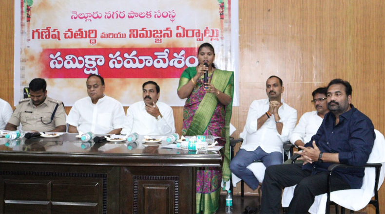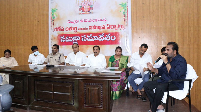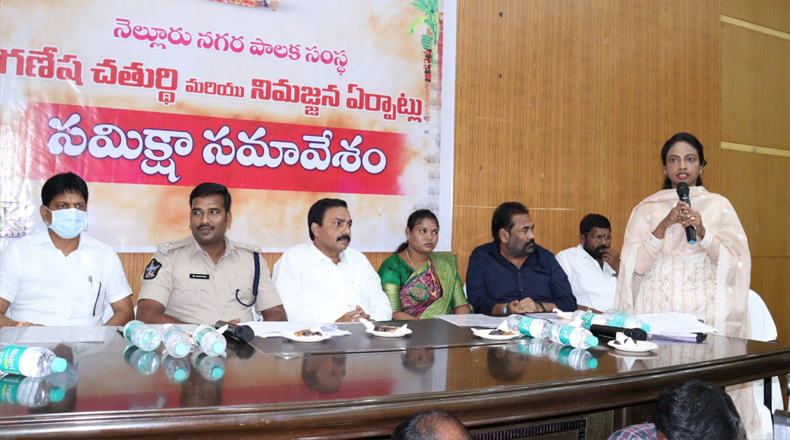 అనంతరం నగర పాలక సంస్థ కమిషనర్ హరిత మాట్లాడుతూ ప్రతీ ఏటా పెన్నా నదిలో జరిగే నిమజ్జన వేదిక మార్పును అందరూ గమనించి సహకరించాలని కోరారు. రాత్రి పూట జరిగే నిమజ్జనాల కోసం నగర పాలక సంస్థ నుంచి ప్రత్యేక ఏర్పాట్లు చేస్తామని తెలిపారు. అదనంగా పారిశుద్ధ్య సిబ్బందిని నియమించి చెరువులో ఎప్పటికప్పుడు పూలు, ఇతర వ్యర్ధాలను తొలగించేలా చర్యలు తీసుకుంటామని కమిషనర్ తెలిపారు. సచివాలయ వ్యవస్థ ద్వారా నగర వ్యాప్తంగా ఏర్పాటు అవుతున్న విగ్రహ మండపాల వివరాలు సేకరించి తగిన రూట్ మ్యాప్ త్వరలో సిద్ధం చేస్తామని తెలిపారు. ఈ సమీక్షా సమావేశంలో రాజ్యసభ సభ్యులు వేమిరెడ్డి ప్రభాకర్ రెడ్డి, మేయర్ పొట్లూరి స్రవంతి, నుడా చైర్మన్ ముక్కాల ద్వారకా నాథ్, డిప్యూటీ మేయర్లు రూప్ కుమార్ యాదవ్, ఖలీల్ అహ్మద్, జిల్లా ఎస్పి విజయ రావు, జాయింట్ కలెక్టర్ కూర్మానాథ్, ఆర్డీవో మలోల, విక్రమ సింహపురి గణేష్ ఉత్సవ సమితి ప్రతినిధులు, కార్పొరేషన్ అన్ని విభాగాల అధికారులు పాల్గొన్నారు.