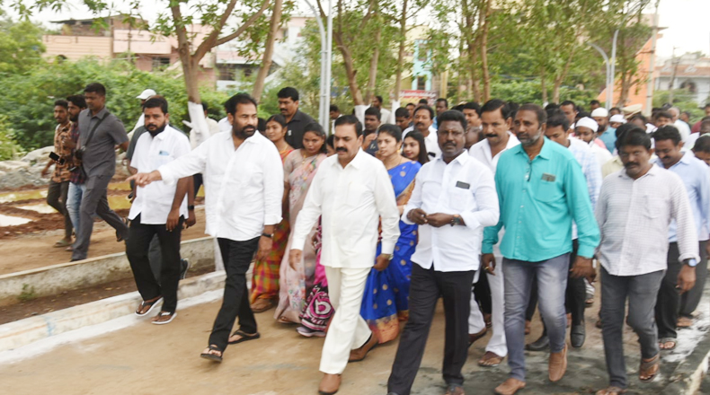 Clock Of Nellore ( Nellore ) – నెల్లూరు నగరంలో గణేష్ ఉత్సవాల నేపద్యంలో ఇరుకళల పరమేశ్వరి అమ్మవారి దేవస్థానం వద్ద నెల్లూరు రూరల్ ఎమ్మెల్యే కోటంరెడ్డి శ్రీధర్ రెడ్డి ఆధ్వర్యంలో ఏర్పాటైన నిమజ్జన ఘాట్ వద్ద అన్నీ సౌకర్యాలు కల్పిస్తున్నామని రాష్ట్ర వ్యవసాయ శాఖ మంత్రి కాకాణి గోవర్ధన్ రెడ్డి అన్నారు. సోమవారం నూతనంగా నిర్మించిన గణేష్ నిమజ్జన ఘాట్ ను ఎమ్మెల్యే కోటంరెడ్డి శ్రీధర్ రెడ్డి తో కలసి పరిశీలించారు. తక్కువ సమయంలో వివిధ శాఖల అధికారులు, ప్రజా ప్రతినిధులు సంయుక్తంగా కృషి చేసి పూర్తి చేసినందుకు సంతృప్తి వ్యక్తం చేస్తూ వారిని అభినందించారు. అదేవిధంగా నెల్లూరు నగరంలో అభివృద్ధి ఒకరోజుతో, ఒక కార్యక్రమంతో అయినట్టు కాదని, ముఖ్యమంత్రి జగన్మోహన్ రెడ్డి ఆశీస్సులతో నిరంతరం కొనసాగిస్తామని తెలియజేశారు. వినాయక చవితి పండుగ సంధర్భంగా గణేష్ నిమజ్జన కార్యక్రమం ప్రతిసారీ నిర్వహించే పెన్నా నదిలో కాకుండా ఇరుకళల అమ్మవారి గుడి సమీపంలో నెల్లూరు చెరువు వద్ద నిర్వహించాలని ఆగస్టు 18న జరిగిన సమావేశంలో అధికారులు, ప్రజా ప్రతినిధులoదరూ కలసి నిర్ణయించగా, కొద్ది రోజుల వ్యవధిలో పండుగకు రెండు రోజుల ముందుగానే సుందరంగా గణేష్ నిమజ్జన ఘాట్ ను నిర్మించారని కొనియాడారు. ఇందుకు నెల్లూరు రూరల్ ఎమ్మెల్యే కోటంరెడ్డి శ్రీధర్ రెడ్డి జరిపిన నిరంతర పట్టుదల, కృషి వల్లే సాధ్యపడిందన్నారు. అదేవిధంగా విక్రమ సింహపురి గణేష్ ఉత్సవ కమిటీ కోరిక మేరకు విగ్రహ నిర్వాహకులకు అన్ని అనుమతులకు సింగిల్ విండో విధానం అమలు చేశామన్నారు. అదేవిధంగా అడిగిందే తడవుగా గణేష్ నిమజ్జన ఘాట్ నిర్మాణ పనులకు తమ వంతు సాయం చేసిన రాజ్యసభ సభ్యులు వేమిరెడ్డి ప్రభాకరరెడ్డి , నుడా చైర్మన్ ముక్కాల ద్వారకానాధ్ లకు తమ ధన్యవాదాలన్నారు.