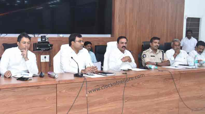 Clock Of Nellore ( Nellore ) – ఈ నెల 6వ తేదీన జరిగే ముఖ్యమంత్రి జిల్లా పర్యటనను ఎలాంటి లోటుపాట్లు లేకుండా అందరూ సమన్వయంతో విజయవంతం చేయాలని రాష్ట్ర వ్యవసాయ శాఖ మంత్రి కాకాని గోవర్ధన్ రెడ్డి అధికారులను ఆదేశించారు. ముఖ్యమంత్రి వైఎస్ జగన్మోహన్ రెడ్డి ఈనెల 6 వ తేదీన జిల్లాలోని మేకపాటి గౌతంరెడ్డి సంగం బ్యారేజ్, నెల్లూరు పెన్నా బ్యారేజ్ ను ప్రారంభిస్తున్న నేపథ్యంలో శనివారం నెల్లూరు నగరంలోని కలెక్టరేట్ తిక్కన ప్రాంగణంలో జిల్లా కలెక్టర్ చక్రధర్ బాబుతో కలిసి అధికారులతో సమీక్ష సమావేశం నిర్వహించారు.