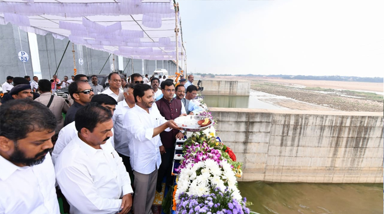 Clock Of Nellore ( Nellore ) – నెల్లూరు నగరంలో పెన్నానదిపై నూతనంగా నిర్మించిన బ్యారేజీ కమ్ బ్రిడ్జిని మంగళవారం మధ్యాహ్నం ముఖ్యమంత్రి వైఎస్ జగన్మోహన్ రెడ్డి ప్రారంభించారు. సంగం బ్యారేజీ ప్రారంభోత్సవ కార్యక్రమం అనంతరం హెలికాప్టర్ లో కోవూరు షుగర్ ప్యాక్టరీ వద్దకు చేరుకున్న సిఎం జగన్ అక్కడి నుండి వాహనంలో బ్యారేజీ పై నుండి రంగనాయకుల పేట వైపుకు చేరుకున్నారు. మంత్రి కాకాణి గోవర్ధన్ రెడ్డి, నగర ఎమ్మెల్యే అనీల్ కుమార్ యాదవ్, నగర మేయర్ స్రవంతితో కలిసి పెన్నానదికి పూజలు నిర్వహించారు. అనంతరం బటన్ నొక్కి బ్యారేజీని జాతికి అంకితం చేశారు. అనంతరం బ్యారేజీ పక్కన ఏర్పాటు చేసిన వైఎస్ రాజశేఖర్ రెడ్డి విగ్రహాన్ని ఆవిష్కరించి అక్కడి నుండి తిరిగి హెలికాప్టర్ లో రేణిగుంట విమానాశ్రయానికి చేరుకుని, ప్రత్యేక విమానంలో గన్నవరం తిరిగి వెళ్లారు. ఈ కార్యక్రమంలో జిల్లాలోని ప్రజా ప్రతినిధులు, వైసీపి నేతలు పాల్గొన్నారు.