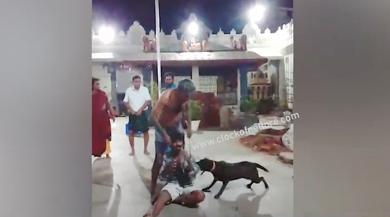 ఆలయం సమీపంలో నివాసముంటున్న రమేష్ అనే వ్యక్తి ఇంటి ముందు నుంచి ఇద్దరు యువకులు వెళుతుండగా… వారిని చూసి పెంపుడు కుక్క మొరిగింది. రమేష్ తన కుక్కను వదలడంతో.. ఓ యువకుడు పారిపోయాడు. మరొకరు ఆలయంలోకి పరుగులు తీయగా.. వెంటబడి పట్టుకుని దాడికి దిగాడు. రమేష్ ప్రవర్తనపై భక్తులు ఆగ్రహం వ్యక్తం చేయడంతో చివరకు బాధితుడిని వదిలేశాడు.