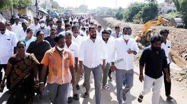 Clock Of Nellore ( Nellore ) – నెల్లూరులోని మైపాడు రోడ్డును 4 లైన్ల రహదారిగా విస్తరిస్తున్నామని ఆ పనులకు సంక్రాంతి పండుగ తర్వాత శంఖుస్థాపన చేయనున్నామని మాజీ మంత్రి, నగర ఎమ్మెల్యే అనీల్ కుమార్ యాదవ్ చెప్పారు. 100 కోట్ల రూపాయలతో జరుగుతున్న జాఫర్ సాహెబ్ కెనాల్ రీటైనింగ్ వాల్ నిర్మాణ పనులను శుక్రవారం ఆయన పరిశీలించారు. పనులు త్వరితగతిన పూర్తి చేయాలని అధికారులకు సూచించారు. అలాగే బోడిగాడితోట ప్రాంతంలో 80 లక్షలతో నిర్మిస్తున్న అర్భన్ హెల్త్ సెంటర్ ను తనిఖీ చేశారు. అనంతరం అనీల్ కుమార్ యాదవ్ మాట్లాడుతూ 100 కోట్ల రూపాయలతో జాఫర్ సాహెబ్ కెనాల్ ను ఆధునీకరిస్తున్నామని, అలాగే మరో 100 కోట్ల రూపాయలతో మైపాడు రహదారిని నాలుగు వరసల రోడ్డుగా విస్తరించబోతున్నామన్నారు. సంక్రాంతి తర్వాత ఆ పనులకు శంఖుస్థాపన చేస్తామన్నారు. ఇవే కాకుండా పెన్నానదిలో మరో వంతెన నిర్మిస్తామని పేర్కొన్నారు. ఈ కార్యక్రమంలో కార్పొరేటర్లు ఓబిలి రవిచంద్ర, కిన్నెర మాల్యాద్రి, వైసీపి నేతలు పోలంరెడ్డి వెంకటేశ్వర్లు రెడ్డి, మద్దినేని శ్రీధర్ తదితరులు పాల్గొన్నారు.