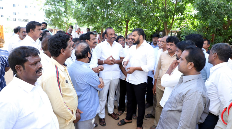 Clock Of Nellore ( Nellore ) – నెల్లూరులోని చిల్డ్రన్స్ పార్కు ప్రాంత అభివృద్ధికి కృషి చేస్తానని, ఆ ప్రాంతాన్ని అంకా అభివృద్ధి చేసేందుకు ఇప్పటికే ప్రణాళికలు సిద్ధం చేశామని మాజీ మంత్రి, నెల్లూరు నగర ఎమ్మెల్యే అనీల్ కుమార్ యాదవ్ వెల్లడించారు. పార్కు రోడ్డులోని జగదీష్ నగర్ 7వ వీధిలో 40 లక్షలతో నిర్మించనున్న సిమెంటు రోడ్డుకు ఆయన శంఖు స్థాపన చేశారు. అనంతరం అనీల్ కుమార్ యాదవ్ మాట్లాడుతూ చిల్డ్రన్స్ పార్కు ప్రాంతాన్ని ఇప్పటికే అభివృద్ధి చేశామని, భవిష్యత్తును దృష్ఠిలో ఉంచుకుని ఇంకా అభివృద్ధి చేస్తామన్నారు. ప్రస్తుతం ఉన్న ప్రధాన రహదారిని మరింత వెడల్పు చేస్తామన్నారు. అలాగే నేరాల నియంత్రణ, భద్రత దృష్ఠ్యా నెల్లూరు నగర నియోజకవర్గంలోని అన్నీ ప్రాధన కూడళ్లలో స్థానికులు సహకారంతో సిసి కెమరాలు ఏర్పాటు చేయిస్తానని అనీల్ తెలిపారు. ఈ కార్యక్రమంలో స్థానిక 16వ డివిజన్ కార్పొరేటర్ వేనాటి శ్రీకాంత్ రెడ్డి, ఇతర డివిజన్లి కార్పొరేటర్లు ఊటుకూరు నాగార్జున, నీలి రాఘవ రావు, కిన్నెర ప్రేమ్ కుమార్ తదితరులు పాల్గొన్నారు.