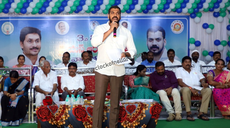 Clock Of Nellore ( Nellore ) – వైఎస్సార్ చేయూత పథకం ద్వారా అందుకున్న మొత్తాన్ని పెట్టుబడిగా సద్వినియోగం చేసుకుని, మహిళలు ఆర్ధిక సుస్థిరత సాధించాలని నెల్లూరు నగర ఎమ్మెల్యే అనిల్ కుమార్ యాదవ్ ఆకాంక్షించారు. నెల్లూరు నగర పాలక సంస్థ, పట్టణ పేదరిక నిర్మూలన సంస్థ (మెప్మా) సంయుక్తంగా ఏర్పాటు చేసిన వైఎస్సార్ చేయూత 3వ విడత వారోత్సవాలను స్థానిక రాజన్న భవన్ సమీపంలోని ఎం.సి.ఎమ్ కల్యాణ మండపంలో సోమవారం నిర్వహించారు. ఈ కార్యక్రమానికి ముఖ్య అతిధిగా ఎమ్మెల్యే అనీల్ కుమార్ హాజరై నగర నియోజకవర్గానికి మంజూరైన చేయూత మొత్తాన్ని లబ్ధిదారులకు అందజేశారు. ఈ సందర్భంగా ఆయన మాట్లాడుతూ ముఖ్యమంత్రి జగన్మోహన్ రెడ్డి ఉన్నతాశయాలతో రూపొందించిన వైఎస్సార్ చేయూత పధకం ద్వారా ఎస్సీ, ఎస్టీ, బిసి, మైనార్టీ మహిళలకు ఆర్ధిక స్వావలంబన సాధ్యమవుతుందని తెలిపారు. చేయూత ద్వారా వచ్చిన మొత్తాన్ని పెట్టుబడిగా మార్చుకుని చిల్లర దుకాణాలు, పాలు, పండ్లు, కూరగాయల అంగళ్ల ఏర్పాటుతో పాటు గొర్రెలు, మేకల పెంపకంతో ఆర్ధికంగా ఎదుగుదల సాధించవచ్చని తెలిపారు. ఔత్సాహిక వ్యాపారస్తులకు భరోసా కల్పించేందుకు రాష్ట్ర ప్రభుత్వం అమూల్, రిలయన్స్, పీ&జీ, ఐటీసీ వంటి పలు సంస్థలతో ఒప్పందాలు కుదుర్చుకుందని, ఆసక్తి కలిగిన మహిళలందరికీ రాష్ట్ర ప్రభుత్వం చేయూత పధకం ద్వారా లబ్ది కల్పిస్తోందని ఎమ్మెల్యే ప్రకటించారు. ఈ కార్యక్రమంలో నగర పాలక సంస్థ కమిషనర్ హరిత, డిప్యూటీ కమిషనర్ చెన్నుడు, మెప్మా ప్రాజెక్ట్ డైరెక్టర్ రవీంద్ర బాబు, డిప్యూటీ మేయర్ ఖలీల్ అహ్మద్, కార్పొరేటర్లు జయలక్ష్మి, అరుణ, రామకృష్ణ, నగర పాలక సంస్థ అధికారులు, సిబ్బంది పాల్గొన్నారు.