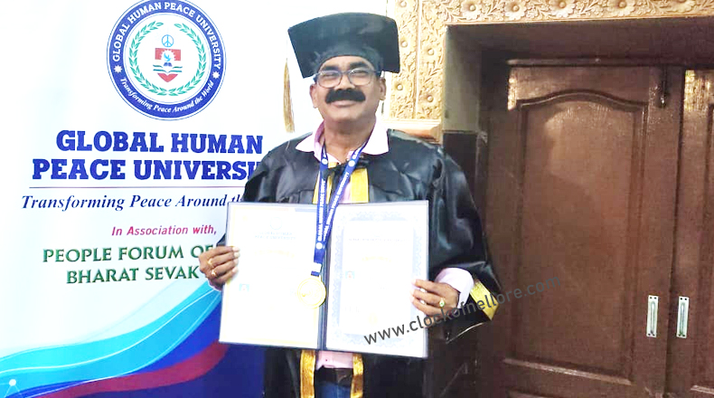 Clock Of Nellore ( Pondicherry ) – నెల్లూరుజిల్లా కృష్ణపట్నంకు చెందిన సీనియర్ జర్నలిస్ట్ కొప్పోలు నాగభూషణం గౌరవ డాక్టరేట్ అందుకున్నారు. పాండిచ్చేరికి చెందిన గ్లోబల్ హ్యూమన్ పీస్ యూనివర్శిటీ శనివారం ఆయనకు పాండిచ్చేరిలో జరిగిన కార్యక్రమంలో గౌరవ డాక్టరేట్ ను ప్రధానం చేసింది. పాత్రికేయ రంగంలో విశేష సేవలు అందించినందుకు గానూ డాక్టరేట్ అందజేసినట్లు ఈ సందర్భంగా నాగభూషణం తెలిపారు. శనివారం పాండిచ్చేరిలోని కంబన్ కళయ్ రంగం ఆడిటోరియంలో యూనివర్శిటీ స్నాతకోత్సవం జరిగింది. ఈ స్నాతకోత్సవంలో యూనివర్శిటీ వైస్- ఛాన్సలర్ నుండి గౌరవ డాక్టరేట్ ను అందుకున్నారు. డాక్టరేట్ ను అందుకున్న కొప్పోలు నాగభూషణంకు పలువురు జర్నలిస్టులు శుభాకాంక్షలు తెలియజేశారు.