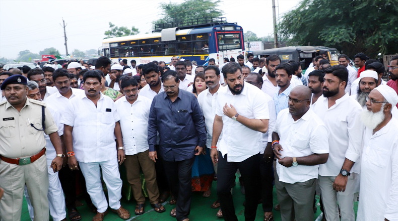 నగరంలోని పాత చెక్ పోస్టు వద్ద వంతెన నిర్మాణానికి విజయదశమి రోజున ఎంపి ఆదాల ప్రభాకర్ రెడ్డితో కలిసి శంఖుస్థాపన చేశారు. ఈ సందర్భంగా ఎంపి ఆదాల ప్రభాకర్ రెడ్డి, ఎమ్మెల్యే అనీల్ కుమార్ యాదవ్ మాట్లాడుతూ నగరంలో దాదాపు 600 కోట్ల రూపాయలతో వివిధ అభివృద్ధి పనులు జరుగుతున్నాయని అన్నారు. 100 కోట్లతో పెన్నాపై నూతన వంతెన, మరో 100 కోట్లతో పెన్నానది కరకట్ట పనులు, 200 కోట్ల రూపాయలతో ఇరిగేషన్ కాలువ పనులు మంజూరు చేయించినట్లు వివరించారు. 18 నెలల్లో వంతెన పనులు పూర్తి చేస్తామని అనీల్ కుమార్ యాదవ్ తెలియజేశారు. నెల్లూరు నగరంలో అభివృద్ద్యే లక్ష్యంగా నిరంతరం పనిచేస్తున్నామని స్పష్టం చేశారు. ఈ కార్యక్రమంలో కార్పొరేషన్ కమిషనర్ హరిత, డిప్యూటీ మేయర్ ఖలీల్ అహ్మద్, విజయ డైరీ ఛైర్మైన్ కొండ్రెడ్డి రంగారెడ్డి, పలువురు కార్పొరేటర్లు, అధికారులు పాల్గొన్నారు.