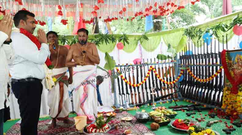 Clock Of Nellore ( Nellore ) – నెల్లూరులోని జిల్లా పోలీసు కార్యాలయంలో విజయదశమి వేడుకలు ఘనంగా జరిగాయి. జిల్లా ఎస్పీ విజయరావు పూజా కార్యక్రమాల్లో పాల్గొన్నారు. వివిధ రకాల పోలీసు ఆయుధాలకు ఎస్పీ ఆయుధ పూజ నిర్వహించారు. అలాగే మోటార్ ట్రాన్స్ పోర్టు విభాగంలోని పోలీసు వాహనాలకు కూడా పూజలు నిర్వహించి జిల్లా పోలీసులకు దసరా శుభాకాంక్షలు తెలియజేశారు. ఈ విజయదశమి నుండి ప్రతీ ఒక్కరూ సుఖ సంతోషాలతో ఉండాలని కాంక్షించారు.