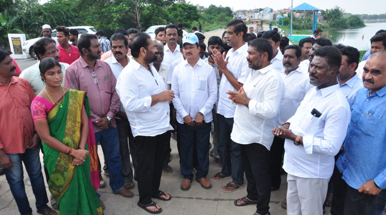 Clock Of Nellore ( Nellore ) – నెల్లూరులోని ఇరుకళల పరమేశ్వరి అమ్మవారి దేవస్థానం వద్ద నెల్లూరు చెరువులో 15 కోట్ల 20 లక్షల రూపాయలతో గణేష్ నిమజ్జన ఘాట్ అభివృద్ధి చేయనున్నామని నెల్లూరు రూరల్ ఎమ్మెల్యే కోటంరెడ్డి శ్రీధర్ రెడ్డి తెలిపారు. నిధులు మంజూరు చేసిన ముఖ్యమంత్రి జగన్మోహన్ రెడ్డికి ఆయన ధన్యవాదాలు తెలియజేశారు. బుధవారం అధికారులు, వైసీపి రాష్ట్ర కార్యదర్శి కోటంరెడ్డి గిరిధర్ రెడ్డితో కలిసి ఆయన ఘాట్ ను పరిశీలించారు. ఘాట్ అభివృద్ధి పనుల గురించి అధికారులను అడిగి తెలుసుకున్నారు. అనంతరం ఎమ్మెల్యే కోటంరెడ్డి మాట్లాడుతూ గణేష్ నిమజ్జన ఘాట్ నెల్లూరు రూరల్ నియోజకవర్గంలోకి రావడం తన అదృష్ఠంగా భావిస్తున్నానని అన్నారు. ఆథ్యాత్మిక, పర్యాటక కేంద్రంగా ఘాట్ ప్రాంతాన్ని తీర్చిదిద్దుతామని స్పష్టం చేశారు. ఈ కార్యక్రమంలో 41వ డివిజన్ కార్పొరేటర్ విజయలక్ష్మి, వైసీపి నేతలు మిద్దె మురళీ కృష్ణాయాదవ్, వెంకటేశ్వర్లు ఆచారి, మధుసూదన్ రావు, సునీల్ రెడ్డి, కృష్ణ, శివ శేషాద్రి, సతీష్, పల్లాల ప్రసాద్, చిరంజీవి, వెంకన్న పాల్గొన్నారు.