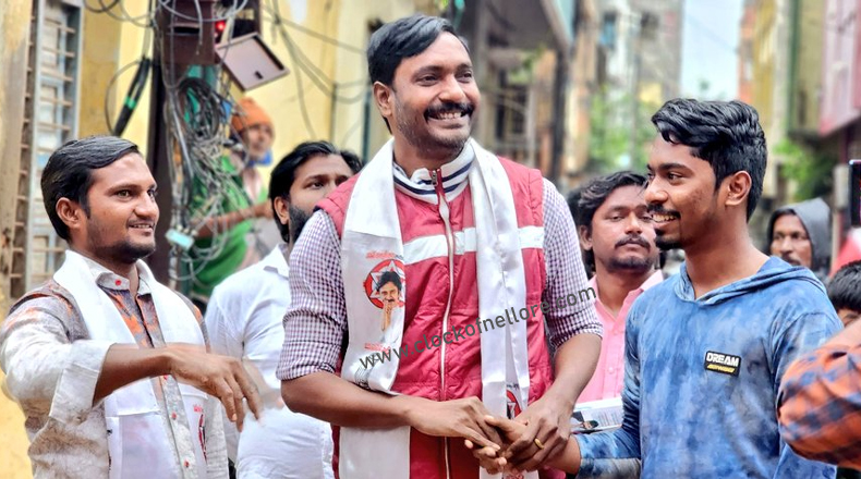Clock Of Nellore ( Nellore ) – నెల్లూరు నగర నియోజకవర్గంలో జనసేన పార్టీ నేత కేతంరెడ్డి వినోద్ రెడ్డి చేపడుతున్న పవనన్న ప్రజాబాట కార్యక్రమం నిర్విరామంగా కొనసాగుతుంది. శుక్రవారానికి ఈ కార్యక్రమం 207వ రోజుకు చేరుకుంది. తుఫాను నేపద్యంలో నెల్లూరులో భారీ వర్షం కురుస్తున్నప్పటికీ వినోద్ రెడ్డి 43వ డివిజన్ లోని పి.ఎన్.ఎం స్కూల్ ప్రాంతంలో పర్యటించారు. గడప గడపకు వెళ్లి సమస్యలను అడిగి తెలుసుకున్నారు. వచ్చే ఎన్నికల్లో జనసేన పార్టీకి ఓటు వేసి పవన్ కళ్యాణ్ ను ముఖ్యమంత్రి చేసుకుంటామని పిలుపునిచ్చారు.