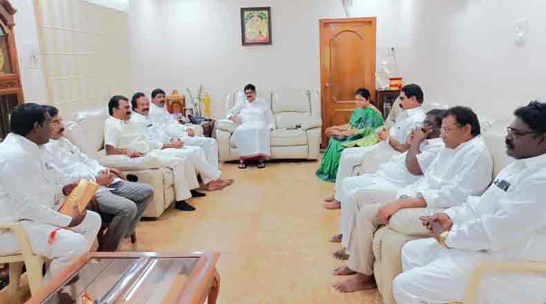 Clock Of Nellore ( Nellore ) – మాజీ మంత్రి, వెంకటగిరి వైసీపి ఎమ్మెల్యే ఆనం రామ నారాయణరెడ్డితో కాంగ్రెస్ పార్టీ రాష్ట్ర అధ్యక్షులు గిడుగు రుద్రరాజు మంగళవారం మర్యాద పూర్వకంగా భేటీ అయ్యారు. పార్టీ కార్యక్రమాల కోసం నెల్లూరుకు విచ్చేసిన రుద్రరాజు సహచర నేతలైన ఏఐసిసి కార్యదర్శి మయప్పన్, పిసిసి వర్కింగ్ ప్రెసిడెంట్ మస్తాన్ వలీ, కాంగ్రెస్ పార్టీ నెల్లూరు జిల్లా అధ్యక్షులు చేవూరు దేవకుమార్ రెడ్డి, తదితర కాంగ్రెస్ నేతలతో కలిసి ఆనం నివాసానికి వెళ్లారు. ఆనం రామ నారాయణరెడ్డి వారిని సాదరంగా ఆహ్వానించారు. కుమారుడు, కోడలుతో కలిసి వారిని సత్కరించారు. ఈ సందర్భంగా పలు రాజకీయ అంశాలపై వారు చర్చించుకున్నారు.