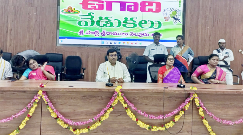 తొలుత తిక్కన ప్రాంగణానికి విచ్చేసిన కలెక్టర్ కు అర్చకులు పూర్ణకుంభంతో ఘన స్వాగతం పలకగా, ప్రముఖ పంచాంగకర్త ఆలూరు శిరోమణి శర్మ ఉగాది పంచాంగ శ్రవణం వినిపించారు. శోభకృత్ నామ సంవత్సరములో అన్ని శుభాలేనని, అన్నిరంగాల్లోనూ జిల్లా అభివృద్ధిపథంలో పయనిస్తోందని ఆయన తన పంచాంగ శ్రవణంలో పేర్కొన్నారు. చిన్నారుల నృత్య ప్రదర్శనలు ఆహుతులను ఆకట్టుకున్నాయి. అనంతరం కవులు తమ కవితా శీర్షికలను చదివి వినిపించారు. ఈ సందర్భంగా కవులు, కళాకారులను జిల్లా కలెక్టర్, జడ్పీ చైర్ పర్సన్, మేయర్, డిఆర్ఓ ఘనంగా సత్కరించారు. ఈ వేడుకల్లో జిల్లా రెవెన్యూ అధికారి వెంకటనారాయణమ్మ, మత్స్య శాఖ, వ్యవసాయ శాఖ జాయింట్ డైరెక్టర్లు నాగేశ్వరావు, సుధాకర్ రాజు, ఏపీఎంఐపీ, హర్టీకల్చర్ పీడీలు శ్రీనివాసులు, సుబ్బారెడ్డి, జిల్లా పర్యాటక, సాంస్కృతిక శాఖ అధికారి కనకదుర్గ భవాని, బీసీ వెల్ఫేర్ అధికారి వెంకటయ్య, ఆర్డిఓ మలోల, జిల్లాస్థాయి అధికారులు, కవులు, కళాకారులు పాల్గొన్నారు.