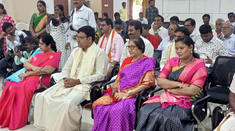Clock Of Nellore ( Nellore ) – శోభకృత్ నామ సంవత్సర ఉగాది జిల్లా ప్రజలందరికీ సకల శుభాలు అందించాలని, ప్రజలందరూ సుఖ సంతోషాలు, ఆయురారోగ్యాలతో జీవించాలని జిల్లా కలెక్టర్ చక్రధర్ బాబు ఆకాంక్షించారు. బుధవారం నెల్లూరు కలెక్టరేట్లోని తిక్కన ప్రాంగణంలో శోభకృత్ నామ సంవత్సర ఉగాది వేడుకలను మన సంస్కృతీ సాంప్రదాయాలు ఉట్టిపడేలా ఘనంగా నిర్వహించారు. ఈ వేడుకలను జిల్లా పరిషత్ ఛైర్ పర్సన్ ఆనం అరుణమ్మ, నెల్లూరు నగర మేయర్ స్రవంతితో కలిసి జిల్లా కలెక్టర్ జ్యోతి ప్రజ్వలన చేసి ప్రారంభించారు. ఈ సందర్భంగా జిల్లా కలెక్టర్ మీడియాతో మాట్లాడుతూ రాష్ట్ర ప్రభుత్వం నవరత్నాల పేరుతో అమలు చేస్తున్న సంక్షేమ పథకాలన్నీ సంపూర్ణంగా ప్రజలందరికీ అంది, ఆర్థికంగా పరిపుష్టి సాధించాలని, పుష్కలంగా వర్షాలు పడి అన్నదాతలు సంతోషంగా ఉండాలని ఆయన ఆకాంక్షించారు. త్వరలో ప్రభుత్వం అమలు చేయనున్న వైయస్సార్ ఆసరాకు సంబంధించి మండల, జిల్లాస్థాయిలో ఉత్సవాలను ఘనంగా నిర్వహించాలని, మహిళలందరూ ఇందులో భాగస్వాములు కావాలని పిలుపునిచ్చారు.