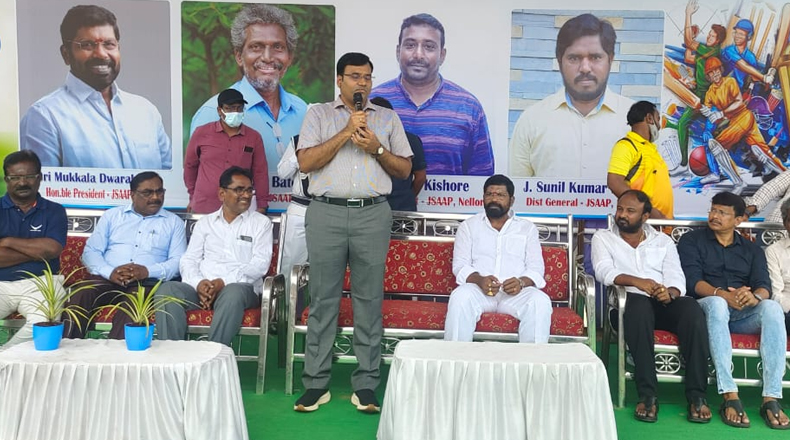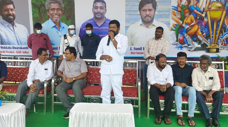 Clock Of Nellore ( Nellore ) – నెల్లూరులోని ఏసి సుబ్బారెడ్డి స్టేడియంలో మూడు రోజుల పాటూ జరిగే జర్నలిస్టుల క్రికెట్ పోటీలను జిల్లా కలెక్టర్ చక్రధర్ బాబు గురువారం ప్రారంభించారు. జర్నలిస్ట్స్ స్పోర్ట్స్ అసోసియేషన్ ఆఫ్ ఆంధ్రప్రదేశ్ జిల్లా కమిటి ఆధ్వర్యంలో జరిగే ఈ పోటీల ప్రారంభోత్సవానికి జిల్లా కలెక్టర్ ముఖ్య అతిధిగా హాజరయ్యారు. ఆయనతో పాటూ నుడా ఛైర్మైన్ ముక్కాల ద్వారకానాథ్ కూడా హాజరయ్యారు. ఈ సందర్భంగా కలెక్టర్ కాసేపు క్రికెట్ ఆడారు. అనంతరం పోటీలను ప్రారంభించారు. ఈ సందర్భంగా ఆయన మాట్లాడుతూ వార్తల సేకరణలో నిత్యం బిజీగా ఉండే జర్నలిస్టుల కోసం క్రికెట్ పోటీలను ఏర్పాటు చేయడం శుభపరిణామమని అన్నారు. ఈ పోటీలకు ఉమ్మడి నెల్లూరు జిల్లాలోని 10 నియోజకవర్గాల నుండి 10 టీములు హాజరయ్యాయి. కార్యక్రమంలో అసోసియేషన్ అధ్యక్షులు కిషోర్ పాల్గొన్నారు.