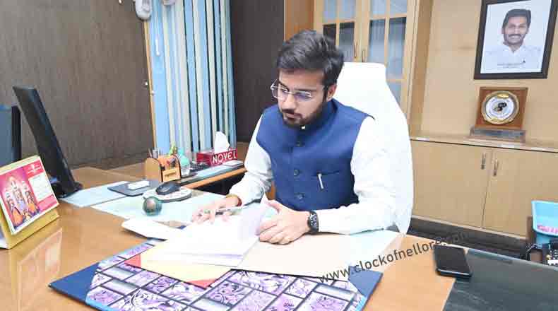 Clock Of Nellore ( Nellore ) – నెల్లూరు నగర పాలక సంస్థ నూతన కమిషనర్ గా ఐఏఎస్ అధికారి వికాస్ మర్మట్ గురువారం బాధ్యతలు స్వీకరించారు. మధ్యాహ్నం నెల్లూరులోని కార్పొరేషన్ కార్యాలయానికి చేరుకున్న వికాస్ మర్మట్ తన ఛాంబర్ కు వెళ్లి కమిషనర్ గా బాధ్యతలు చేపట్టారు. ఈ సందర్భంగా డిప్యూటీ కమిషనర్ చెన్నుడు, ఇతర అధికారులు, సిబ్బంది నూతన కమిషనర్ కు పుష్ప గుచ్చాలు సమర్పించి శుభాకాంక్షలు తెలియజేశారు. అనంతరం కమిషనర్ వికాస్ మర్మట్ మాట్లాడుతూ కార్పొరేషన్ లోని అన్నీ విభాగాల అధికారులతో సమీక్ష నిర్వహించి నగరాభివృద్ధి అవసరమైన ప్రణాళికలను సిద్దం చేస్తామని అన్నారు. వేగవంతమైన పాలన అందించేందుకు, త్వరితగతిన ప్రజా సమస్యలను పరిష్కరించేందుకు గతంలో వివిభ ప్రభుత్వ విభాగాల్లో పనిచేసిన అనుభవం ఎంతగానో ఉపయోగపడుతుందని పేర్కొన్నారు. సచివాలయాలను ఎప్పటికప్పుడు ఆకస్మికంగా తనిఖీ చేస్తూ వాటి ద్వారా ప్రజలకు మెరుగైన సేవలు అందేలా కృషి చేస్తానని వికాస్ మర్మట్ తెలియజేశారు. అనంతరం ఆయన మేయర్ ఛాంబర్ కు వెళ్లి మేయర్ స్రవంతిని మర్యాద పూర్వకంగా కలిశారు. ఆమెకు పుష్పగుచ్ఛం అందజేశారు. ఈ సందర్భంగా మేయర్ స్రవంతి నూతన కమిషనర్ కు శుభాకాంక్షలు తెలియజేశారు. నగర అభివృద్ధిపై కొద్ది సేపు చర్చించారు. అభివృద్ధి విషయంలో అధికారులు, ప్రజా ప్రతినిధులు కలిసి పనిచేయాలని సూచించారు. తర్వాత కలెక్టర్ కార్యాలయానికి చేరుకున్న నూతన కమిషనర్ వికాస్ మర్మట్ జాయింట్ కలెక్టర్ రోణంకి కూర్మనాథ్ ను మర్యాద పూర్వకంగా కలిశారు.