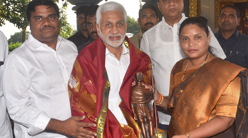 Clock Of Nellore ( Nellore ) – నెల్లూరు దర్గామిట్టలో ఉన్న శ్రీ రాజరాజేశ్వరి అమ్మవారి ఆలయంలో ఈనెల 15వ తేదీ నుండి జరిగే దేవీ శరన్నవ రాత్రి ఉత్సవాల్లో పాల్గొనాలని నెల్లూరు నగర మేయర్ స్రవంతి దంపతులను ఆహ్వానించారు… ఆలయ ఛైర్మైన్, ఈఓ, అర్చకులు, కమిటి సభ్యులు. బుధవారం మేయర్ ను మున్సిపల్ కార్పొరేషన్ కార్యాలయంలోని ఆమె ఛాంబర్ లో కమిటి సభ్యులు కలిసి ఆహ్వాన పత్రికను అందజేశారు. మరో వైపు నెల్లూరుకు విచ్చేసిన ఎంపి విజయసాయి రెడ్డిని మేయర్ స్రవంతి, వైసీపి నేత జయవర్ధన్, జిల్లా పరిషత్ ఛైర్ పర్సన్ ఆనం అరుణమ్మ, వైసీపి రాష్ట్ర కార్యదర్శి ఆనం విజయకుమార్ రెడ్డి మర్యాద పూర్వకంగా కలిశారు.
