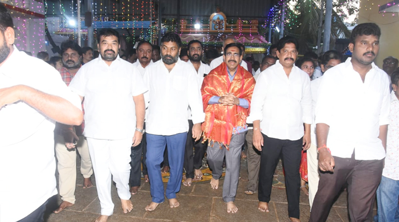 Clock Of Nellore ( Nellore ) – నెల్లూరు శ్రీ రాజరాజేశ్వరి అమ్మవారి దేవస్థానంలో దేవీశరన్నవ రాత్రి వేడుకలు అత్యంత వైభవంగా జరుగుతున్నాయి. ఈ క్రమంలో రాజరాజేశ్వరి అమ్మవారిని సోమవారం మాజీ మంత్రి పొంగూరు నారాయణ దర్శించుకున్నారు. ఈ సందర్భంగా నారాయణకు ఆలయ గౌరవ మర్యాదలతో అర్చకులు ఘన స్వాగతం పలికారు. శ్రీ రాజరాజేశ్వరి అమ్మవారిని దర్శించుకున్న పొంగూరు నారాయణ ప్రత్యేక పూజలు నిర్వహించారు. చంద్రబాబునాయుడు త్వరగా విడుదల కావాలని, ప్రజలంతా సుభిక్షంగా ఉండాలని ఆయన ఆకాంక్షించారు. ఈ కార్యక్రమంలో టీడీపీ నాయకులు కోటంరెడ్డి గిరిధర్రెడ్డి, ఆలయ కమిటీ సభ్యులు, తదితరులు పాల్గొన్నారు.