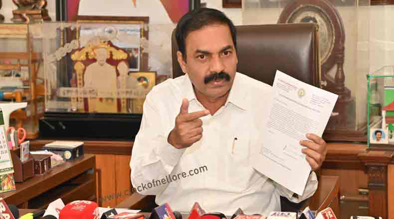 Clock Of Nellore ( Nellore ) – రాజకీయ ప్రయోజనాల కోసమే సోమిరెడ్డి తనపై ఆరోపణలు చేస్తున్నారని మంత్రి కాకాణి గోవర్ధన్రెడ్డి మండిపడ్డారు. కృష్ణ పట్నం పోర్టులో కంటైనర్ టెర్మినల్ ను కొనసాగించేందుకు అన్ని విధాలా కృషి జరుగుతోందన్నారు. శుక్రవారం నెల్లూరులోని వారి నివాసంలో మంత్రి మీడియాతో మాట్లాడారు. కృష్ణపట్నం పోర్టులో కంటైనర్ టెర్మినల్ విషయంపై రాష్ట్ర.. కేంద్ర ప్రభుత్వంతో చర్చిస్తున్నామన్నారు. అఖిల పక్షం నేతలు ఎవరూ మాట్లాడటం లేదన్నారు. కానీ టీడీపీ నేత సోమిరెడ్డి మాత్రం తనను టార్గెట్ చేసి మాట్లాడుతున్నారన్నారు. ఆయన నాపై వ్యక్తిగత ఆరోపణలు చేస్తున్నారన్నారు. గతంలో సెంబ్ కార్ప్ విషయంలో కూడా ఇదే తరహాలో ఉద్యమం చేసి, అఖిల పక్షాన్ని మోసం చేశారన్నారు. కంటైనర్ టెర్మినల్ కొనసాగుతుందని, ఇటీవల కాలంలో కంటైనర్ వ్యాపారం తగ్గిందన్నారు. టెర్మినల్ లో కార్యకలాపాలు కొనసాగించేలా చూడాలని కేంద్ర మంత్రి కి కూడా లేఖ రాశామని, రాజకీయ ప్రయోజనాల కోసమే సోమిరెడ్డి తనపై ఆరోపణలు చేస్తున్నారని మండిపడ్డారు.