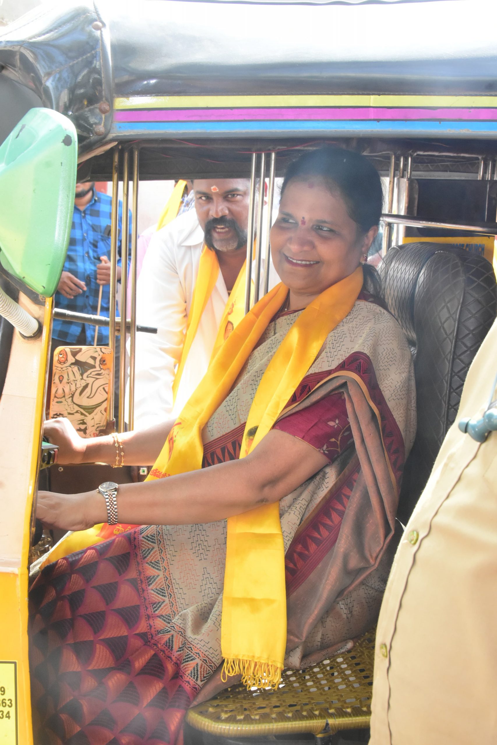 Clock Of Nellore ( Nellore ) – మాజీ మంత్రి నారాయణకు నెల్లూరు నగర ప్రజలంతా కొండంత అండగా ఉన్నారని, ఈ సారి ఆయన్ను గెలిపించుకుంటామంటూ ప్రజలే తనకు స్వచ్ఛంధంగా చెబుతున్నారని నారాయణ సతీమణి పొంగూరు రమాదేవి పేర్కొన్నారు. నెల్లూరు 40వ డివిజన్ లో ఆమె ఎన్నికల ప్రచారాన్ని నిర్వహించారు. స్థానిక టిడిపి, జనసేన నేతలతో కలిసి మూలాపేట, వాకర్స్ రోడ్డు తదితర ప్రాంతాల్లో గడప గడపకు తిరిగారు. వచ్చే ఎన్నికల్లో టిడిపికి ఓటు వేసి నారాయణను గెలిపించాలని ఓటర్ల అభ్యర్ధించారు. గడప గడపకూ వెళ్లిన రమాదేవిని ప్రజలు విశేషంగా ఆదరిస్తూ ఈ దఫాను నారాయణను గెలిపించుకుంటామని హామీ ఇస్తున్నారు. 2014 నుండి 2019 వరకూ నెల్లూరు సిటీలో నారాయణ చేసిన వివిధ అభివృద్ధి పనులను ఆమె ఓటర్లకు వివరించారు. ప్రస్తుత వైసీపి ప్రభుత్వంలో అభివృద్ధి జరగలేదని, నారాయణను గెలిపిస్తే నిలిచిపోయిన అభివృద్ధి పనులను పూర్తి చేస్తారని పేర్కొన్నారు. పొంగూరు రమాదేవి ప్రచారం చేస్తున్న క్రమంలో ఓ ఆటో కార్మికుడు తన ఆటో ఎక్కాలని కోరగా, ఆమె డ్రైవింగ్ సీట్లో కూర్చుని కొద్ది దూరం ఆటోను డ్రైవ్ చేసి కార్యకర్తలను ఉత్సాహ పరిచారు.