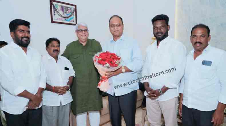 Clock Of Nellore ( Nellore ) – వైసీపికి రాజీనామా చేసి మార్చి 2వ తేదీనా తెలుగుదేశం పార్టీలో చేరనున్న రాజ్యసభ సభ్యులు వేమిరెడ్డి ప్రభాకర్ రెడ్డిని బుధవారం జనసేన పార్టీ నేతలు మర్యాద పూర్వకంగా కలిశారు. పుష్పగుచ్చం అందజేసి శుభాకాంక్షలు తెలియజేశారు. జనసేన జాతీయ మీడియా ప్రతినిధి వేములపాటి అజయ్, నెల్లూరుజిల్లా జనసేన ప్రధాన కార్యదర్శి గునుకుల కిషోర్, జిల్లా అధికార ప్రతినిధి కారంపూడి కృష్ణారెడ్డి తదితరులు నెల్లూరులోని వేమిరెడ్డి నివాసానికి వెళ్లారు. మర్యాద పూర్వకంగా భేటీ అయ్యి తెలుగుదేశం పార్టీలో చేరుతున్న సందర్భంగా శుభాకాంక్షలు తెలియజేశారు.