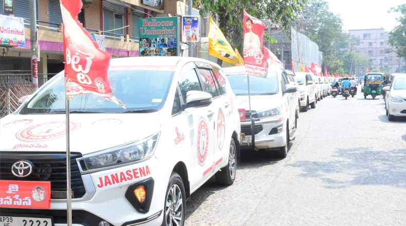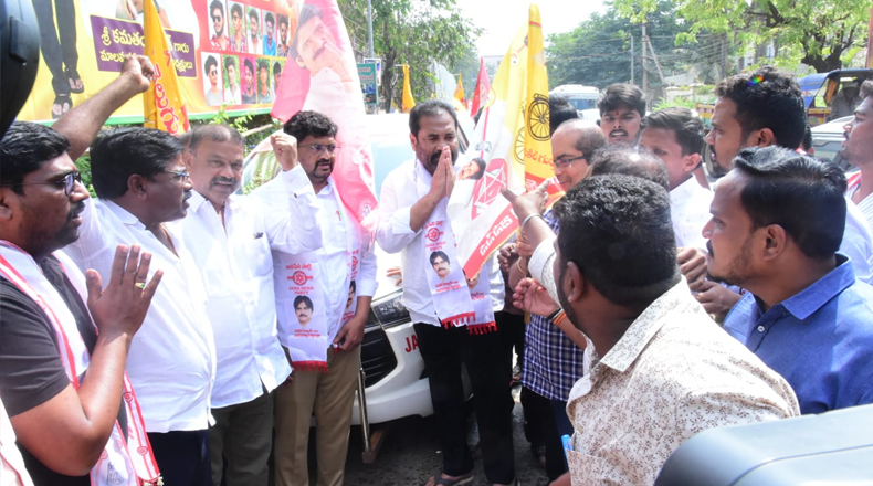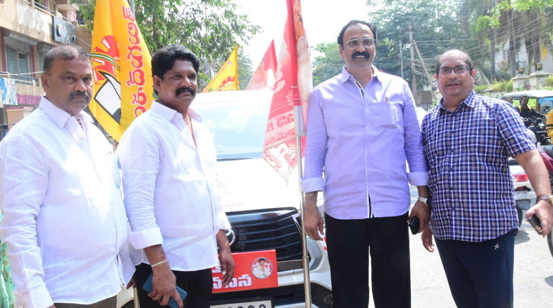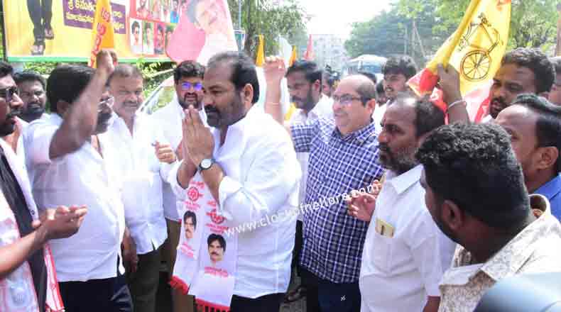 Clock Of Nellore ( Nellore ) – నెల్లూరు రూరల్ నియోజకవర్గంలో జనసేన పార్టీ ఎన్నికల ప్రచారాన్ని ప్రారంభించింది. టిడిపి – జనసేన ఉమ్మడి అభ్యర్ధి కోటంరెడ్డి శ్రీధర్ రెడ్డిని గెలిపించాలన్న లక్ష్యంతో ప్రవాస భారతీయులు కొట్టే ఉదయ్ భాస్కర్ ప్రచార వాహనాలు సమకూర్చి రూరల్ నియోజకవర్గంలో ప్రచారం చేయించనున్నారు. ఈ వాహనాలను సోమవారం తన కార్యాలయం వద్ద ఎమ్మెల్యే కోటంరెడ్డి శ్రీధర్ రెడ్డి జెండా ఊపి ప్రారంభించారు. ఇప్పటికే నెల్లూరు సిటీలో ప్రచారాన్ని పూర్తి చేసిన నేతలు, ఇవాళ నుండి రూరల్ నియోజకవర్గంలో ప్రచారాన్ని నిర్వహించనున్నారు. నెల్లూరుజిల్లా జనసేన ప్రచార నిర్వాహకులు కొట్టే వెంకటేశ్వర్లు పర్యవేక్షణలో ఈ ప్రచార వాహనాలు తిరగనున్నాయి. ఈ సందర్భంగా జనసేన నేతలు మాట్లాడుతూ జనసేన – తెలుగుదేశం పార్టీ ఉమ్మడి అభ్యర్ధుల విజయమే లక్ష్యంగా ఈ వాహనాల ద్వారా ప్రచారం నిర్వహిస్తామని తెలిపారు.