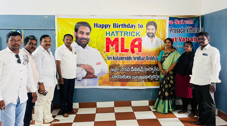 Clock Of Nellore ( Nellore ) – నెల్లూరు రూరల్ ఎమ్మెల్యే కోటంరెడ్డి శ్రీధర్ రెడ్డి జన్మదిన వేడుకలు గురువారం ఘనంగా జరిగాయి. ఆయన పుట్టిన రోజు సందర్భంగా నెల్లూరులోని వివిధ ప్రాంతాల్లో అభిమానులు, టిడిపి నేతలు సేవా కార్యక్రమాలను నిర్వహించారు. కేకులను కట్ చేసి కోటంరెడ్డికి జన్మదిన శుభాకాంక్షలు తెలియజేశారు. నగరంలోని 19వ డివిజన్ రామలింగాపురంలో టిడిపి నేత నూకరాజు మదన్ కుమార్ రెడ్డి ఆధ్వర్యంలో కోటంరెడ్డి జన్మదిన వేడుకలు జరిగాయి. ఈ కార్యక్రమానికి కోటంరెడ్డి గిరిధర్ రెడ్డి ముఖ్య అతిధిగా హాజరయ్యి కేక్ కట్ చేశారు. అలాగే పేదలకు అన్నదానం చేశారు. 20వ డివిజన్ కార్పొరేటర్ చేజర్ల మహేష్ వాత్సల్య అనాథ ఆశ్రమంలో అన్నదాన కార్యక్రమాన్ని నిర్వహించారు. ముందుగా కేక్ కట్ చేసి కోటంరెడ్డికి జన్మదిన శుభాకాంక్షలు తెలియజేశారు. అనంతరం ఆశ్రమంలోని విద్యార్ధులకు స్వయంగా భోజనం వడ్డించి, వివిధ రకాల పండ్లను అందజేశారు. అలాగే రూరల్ నియోజకవర్గంలోని పలు ప్రాంతాల్లో కోటంరెడ్డి జన్మదిన వేడుకలు జరిగాయి. మరో వైపు జన్మదిన వేడుకలకు ఎమ్మెల్యే కోటంరెడ్డి దూరంగా ఉన్నారు. బెంగుళూరులో ఉన్నారు.