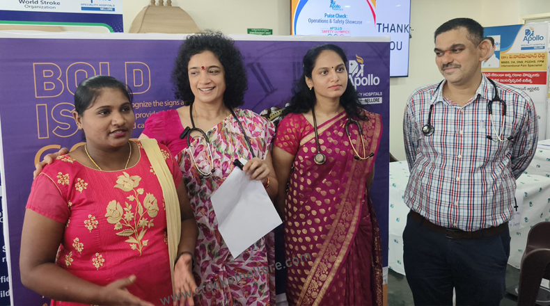Clock Of Nellore ( Nellore ) – పక్షవాతం సోకినప్పుడు ప్రతీ నిముషం ఎంతో విలువైందని, ఎంత త్వరగా రోగిని వైద్యుని వద్దకు తీసుకెళ్తే అంత త్వరగా పక్షవాతం నయమవుతుందని నెల్లూరు అపోలో స్పెషాలిటీ హాస్పిటల్ న్యూరాలజీ విభాగ అధిపతి డాక్టర్ బింధు మీనన్, హాస్పిటల్ డైరెక్టర్ ఆఫ్ మెడికల్ సర్వీసెస్ డాక్టర్ శ్రీరాం సతీష్ అన్నారు ( Nellore Apollo Speciality Hospital ). ప్రపంచ స్ట్రోక్ డేను పురస్కరించుకుని మంగళవారం అపోలో హాస్పిటల్ లో ఉచిత న్యూరాలజీ వైద్య శిభిరం జరిగింది. ఇందులో భాగంగా పలువురికి ఉచిత పరీక్షలను నిర్వహించారు. అలాగే స్ట్రోక్ రాకుండా ఎలాంటి జాగ్రత్తలు తీసుకోవాలి, ఒక వేళ స్ట్రోక్ వస్తే ఎంత సమయంలోపు వైద్యుని వద్దకు తీసుకెళ్లాలి అనే తదితర అంశాలను డాక్టర్ బింధు మీనన్, ఇతర వైద్య బృందం… హాజరైన వారికి తెలియజేశారు. నెల్లూరు అపోలో హాస్పిటల్ లో స్ట్రోక్ కు గురైన రోగులకు ఎలాంటి వైద్య సేవలు అందుబాటులో ఉన్నాయనే విషయాలను కూడా వివరించారు.