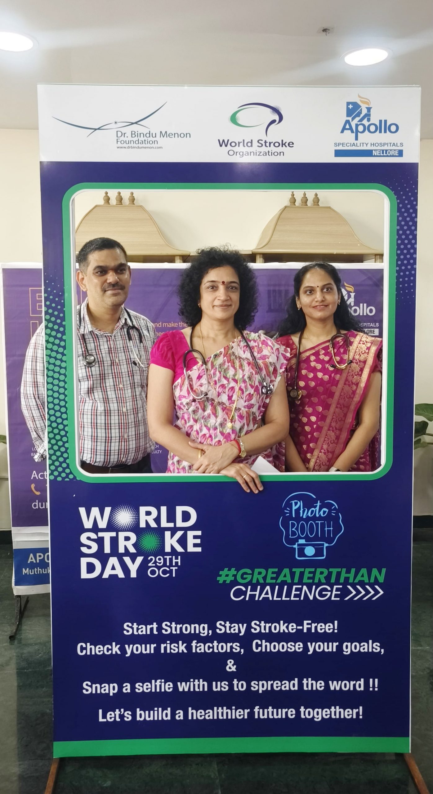 ఈ సందర్భంగా అక్కడ జరిగిన అవగాహన కార్యక్రమంలో డాక్టర్ బింధు మీనన్, డాక్టర్ శ్రీరాం సతీష్ స్ట్రోక్ ( పక్ష వాతం ) గురించి మాట్లాడారు ( World Strock Day ). పక్షవాతం పెను ఉత్పాతం అని, మెదడులో సునామీగా విరుచుకుపడి, చెట్టంత మనిషిని సైతం కుప్పకూలుస్తుందని హెచ్చరించారు. పక్షవాతం బారిన పడితే శరీరంలో సగ భాగం చచ్చుబడిపోతుందని, కాలు చేయి ఆడదని, నోట మాట రాదని, మొత్తంగా ఆ మనిషి అనుభవించే దురవస్థకు అంతే ఉండదని పేర్కొన్నారు. సమాజంలో అధిక సంఖ్యలో ప్రజలను వికలాంగులుగా మారుస్తున్న అతి పెద్ద సమస్య పక్షవాతం ( స్ట్రోక్ ) అని తెలియజేశారు. మెదడులో ఉన్నట్టుండి రక్తనాళాలు పూడుకుపోయి, కొంత భాగానికి రక్త సరఫరా నిలిచిపోతే ఆ భాగం చచ్చుబడిపోతుందని దాని కారణంగా మనిషి స్ట్రోక్ గు రురౌతాడని వెల్లడించారు. ఆ సమయంలో రోగిని ఎంత త్వరగా వైద్యుని వద్దకు తీసుకెళ్తే అంత త్వరగా పక్షవాతం నయమవుతుందని చెప్పారు. పక్షవాతానికి గురౌనప్పుడు ప్రతీ నిముషం ఎంతో కీలకమైందని, సకాలంలో వైద్యుని వద్దకు తీసుకెళ్లి వైద్యం అందిస్తే పూర్తిగా కోలుకోవచ్చునని పేర్కొన్నారు.