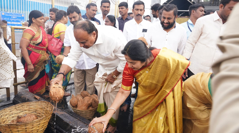 Clock Of Nellore ( Tirumala ) – తిరుమల తిరుపతి దేవస్థానం బోర్డు మెంబర్ గా నియమితులైన కోవూరు నియోజకవర్గ ఎమ్మెల్యే వేమిరెడ్డి ప్రశాంతిరెడ్డి బుధవారం ప్రమాణ స్వీకారం చేశారు. టిటిడి ఛైర్మన్ బి.ఆర్ నాయుడు, ఇతర సభ్యులతో కలిసి శ్రీవారి ఆలయంలో ఆమె బోర్డు మెంబర్గా ప్రమాణ స్వీకారం చేశారు. కార్యక్రమంలో నెల్లూరు పార్లమెంట్ సభ్యులు వేమిరెడ్డి ప్రభాకర్రెడ్డితో పాటు కుమారుడు అర్జున్రెడ్డి, కుమార్తె నీలిమారెడ్డి పాల్గొన్నారు. ఈ సందర్భంగా ముఖ్య నాయకులు కోటంరెడ్డి గిరిధర్రెడ్డి, కోడూరు కమలాకర్రెడ్డి తదితరులు వేమిరెడ్డి దంపతులను ఘనంగా సత్కరించారు. కార్యక్రమంలో చైతన్య కృష్ణ, వంశీరెడ్డి, కేతంరెడ్డి వినోద్రెడ్డి, సూరా శ్రీనివాసులురెడ్డి, చెంచు కిషోర్, జెట్టి రాజగోపాల్, మదన్రెడ్డి, మల్లారెడ్డి, నాయకులు తదితరులు పాల్గొన్నారు. అనంతరం వేమిరెడ్డి దంపతులు తిరుమల శ్రీవారిని దర్శించుకున్నారు. అఖండ దీపం వద్ద టెంకాయలు కొట్టి మొక్కు చెల్లించుకున్నారు. ఈ సందర్భంగా వారు మాట్లాడుతూ… తిరుమల తిరుపతి దేవస్థానం పాలకమండలి సభ్యురాలిగా ప్రమాణస్వీకారం చేయడం అదృష్టంగా భావిస్తున్నామన్నారు. తిరుమలలో ఎక్కడా సామాన్య భక్తులకు ఇబ్బందులు కలగకుండా పనిచేస్తామని స్పష్టం చేశారు. ఈ అవకాశం ఇచ్చిన సీఎం నారా చంద్రబాబు నాయుడుకు ప్రత్యేక కృతజ్ఞతలు తెలియజేశారు.