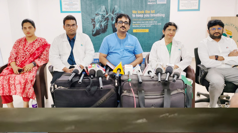 Clock Of Nellore ( Nellore ) – ఊపిరితిత్తుల క్యాన్సర్లను ముందుగానే గుర్తించి తద్వారా మరణాల సంఖ్యను తగ్గించడమే లక్ష్యంగా అపోలో హాస్పిటల్స్ గ్రూప్ ముందడుగు వేసిందని అందులో భాగంగా భారత దేశంలో మొట్టమొదటి సారిగా అపోలో హాస్పిటల్స్ లంగ్ లైఫ్ పేరుతో ఊపిరితిత్తుల స్క్రీనింగ్ ప్రోగ్రాంను ప్రారంభించిందని నెల్లూరు అపోలో స్పెషాలిటి హాస్పిటల్ డైరెక్టర్ ఆఫ్ మెడికల్ సర్వీసెస్ డాక్టర్ శ్రీరాం సతీష్ వెల్లడించారు ( Lung Life Screening Programe ). గురువారం ఆయన నెల్లూరులోని అపోలో హాస్పిటల్ లో వైద్యులతో కలిసి ఊపిరితిత్తుల స్కీనింగ్ పరీక్షలను ప్రారంభించారు. అనంతరం జరిగిన మీడియా సమావేశంలో అపోలో అంకాలజీ సర్జన్ డాక్టర్ మనోభిరామ్, అంకాలజీ ఫిజీషియన్ డాక్టర్ హరిత, పల్మనాలజిస్టులు డాక్టర్ ఉమా మహేష్, డాక్టర్ శ్రావణితో కలిసి డాక్టర్ శ్రీరాం సతీష్ మాట్లాడారు. ఊపిరి తిత్తుల క్యాన్సర్ పై ప్రజలకు అవగాహన కల్పించడమే కాకుండా లంగ్ క్యాన్సర్లను నివారించడానికి భారతదేశంలోనే మొట్ట మొదటి సారిగా అపోలో హాస్పిటల్స్ గ్రూపు లంగ్ లైఫ్ స్క్రీనింగ్ ప్రోగ్రామ్ ను ప్రారంభించిందని తెలిపారు. నెల్లూరు అపోలో స్పెషాలిటీ హాస్పిటల్ లో కూడా స్క్రీనింగ్ ప్రోగ్రామ్ ను ఆరంభించామన్నారు. ( Nellore Apollo Speciality Hospital ) క్యాన్సర్ వ్యాధులను నివారించే చికిత్సలు అందించడంలో అపోలో హాస్పిటల్ అగ్రగామిగా ఉందని గుర్తు చేశారు. 50 నుండి 80 ఏళ్ల మధ్య వయసు కలిగిన వారు ఎక్కువగా ఊపిరితిత్తుల క్యాన్సర్ బారిన పడే అవకాశం ఉందన్నారు. అలాగే ధూమపానం చేసే వారికి, క్యాన్సర్ వ్యాధులు ఎక్కువగా సోకిన వారి కుటుంబాల్లోని వారికి కూడా ఊపిరితిత్తుల క్యాన్సర్ సోకే అవకాశం ఉందని డాక్టర్ శ్రీరాం సతీష్ పేర్కొన్నారు. అలాంటి వ్యక్తులు క్యాన్సర్ స్క్రీనింగ్ పరీక్షలు చేయించుకోవాలని సూచిస్తూ నెల్లూరు అపోలో హాస్పిటల్ లో అతితక్కువ ఫీజుతోనే పరీక్షలు నిర్వహిస్తున్నట్లు వెల్లడించారు. ఈ అవకాశాన్ని సద్వినియోగం చేసుకుని క్యాన్సర్ నుండి బయటపడాలని విజ్ఞప్తి చేశారు.