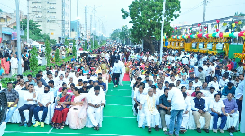 Clock Of Nellore ( Nellore ) – నెల్లూరు నగరంలోని మైపాడు గేటు సెంటర్ లో పైలెట్ ప్రాజెక్టుగా ఏర్పాటు చేసిన స్మార్ట్ స్ట్రీట్ వెండింగ్ మార్కెట్ ను శనివారం రాత్రి ముఖ్యమంత్రి చంద్రబాబు నాయుడు అమరావతి నుండి వర్చువల్ గా ప్రారంభించారు. 7 కోట్ల రూపాయల వ్యయంతో 30 మాడ్యువల్ కంటెయినర్లతో 120 షాపులను పురపాలక శాఖ మంత్రి డాక్టర్ పొంగూరు నారాయణ ప్రత్యేకంగా ఏర్పాటు చేయించారు. ఒక్కో కంటెయినర్ లో నాలుగు షాపులు ఉండేలా డిజైన్ చేసి ఆయా షాపులను మహిళలు, దివ్యాంగులు, వెనుకబడిన వర్గాల వారికి కేటాయించారు. శనివారం రాత్రి స్మార్ట్ స్ట్రీట్ మార్కెట్ ప్రారంభోత్సవం అట్టహాసంగా జరిగింది. నెల్లూరులో మంత్రి నారాయణ, జిల్లా కలెక్టర్ హిమాన్షు శుక్లా, నగర పాలక సంస్థ కమిషనర్ నందన్ తదితరులు పాల్గొన్నారు. కార్యక్రమంలో భాగంగా సిఎం చంద్రబాబు అమరావతి నుండి మార్కెట్ ను వర్చువల్ ప్రారంభించి షాపులు పొందిన వారితో ప్రత్యక్షంగా మాట్లాడారు. అనంతరం మంత్రి నారాయణ లబ్ధిదారులకు షాపులకు సంభందించిన యాజమాన్య హక్కుల పత్రాలను అందజేశారు. అనంతరం మంత్రి నారాయణ మాట్లాడుతూ రాష్ట్రంలో తొలి స్మార్ట్ స్ట్రీట్ బజార్ నెల్లూరులో ప్రారంభం కావడం సంతోషంగా ఉందని అన్నారు. ఇంటికో మహిళా వ్యాపారవేత్తను తయారు చేయాలన్న ఆలోచనతోనే స్మార్ట్ స్ట్రీట్ బజార్ పురుడుపోసుకుందని వెల్లడించారు. రాష్ట్రంలోని మరో 8 మున్సిపాల్టీలలో పైలెట్ ప్రాజెక్టుగా స్మార్ట్ స్ట్రీట్ బజార్లను ఏర్పాటు చేస్తున్నామని, లబ్ధిదారులకు పైసా ఖర్చు లేకుండా వంద శాతం రుణం అందించామన్నారు.