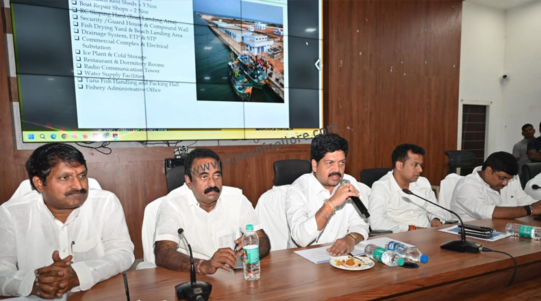 Clock Of Nellore ( Nellore ) – జువ్వలదిన్నె వద్ద సాగర్ డిఫెన్స్ ఇంజనీరింగ్ ప్రైవేట్ కంపెనీ వల్ల మత్య్స కారులకు ఎలాంటి ఇబ్బంది ఉన్నట్లయితే ప్రభుత్వం వాటిని ముందుండి పరిష్కరిస్తుందని రాష్ట్ర గనులు, భూగర్భ వనరులు మరియు ఎక్సైజ్ శాఖ మంత్రి కొల్లు రవీంద్ర అన్నారు. మంగళవారం నెల్లూరు కలెక్టరేట్ లోని తిక్కన ప్రాంగణములో జరిగిన మత్య్సకారులు మరియు అధికారులతో ముఖాముఖి కార్యక్రమములో ఆయన ముఖ్య అతిధిగా పాల్గొన్నారు. మత్య్సకారులు మరియు అధికారులతో సుదీర్గ చర్చ అనంతరం మంత్రి కోల్లు రవీంద్ర పాత్రికేయులతో మాట్లాడుతూ చాలా రాష్ట్రాలు, దేశాలు సైతం సదరు సాగర్ డిఫెన్స్ ఇంజనీరింగ్ ప్రైవేట్ కంపెనీ ఏర్పాటుకై పోటీ పడుతున్నాయన్నారు. సమస్యలు ఏమైనా స్థానిక నాయకుల సహకారాలతో ప్రభుత్వం దృష్టికి తీసుకొని వచ్చి పరిష్కరించుకోవాలని సూచించారు. జువ్వలదిన్నె ఫిషింగ్ హార్బర్ స్థానికులు మరియు జిల్లా కలెక్టర్ అధ్యక్షతన ఈ సమావేశము నిర్వహించడం జరిగిందన్నారు.